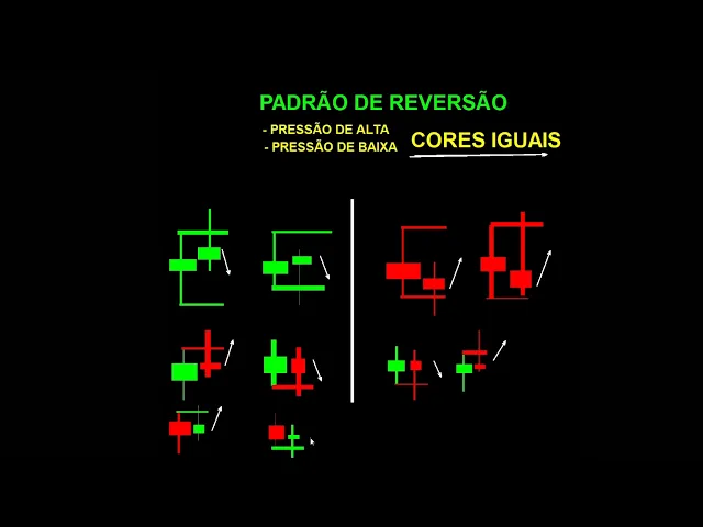 agora bora pro padrão de reversão aquele padrão que vai inverter a tendência padrão de reversão aí dentro desse padrão de reversão temos a pressão de alta temos também a pressão de baixa dentro dessa pressão de alta pressão de baixa diferente do padrão de continuação porque o de continuação é pressão de alta e pressão de baixa de cores diferentes agora nesse caso é a pressão de alta e pressão de baixa de cores iguais Então essa que vai ser a diferença é que a pressão de alta e pressão de baixa de cores diferente representa a continuação de