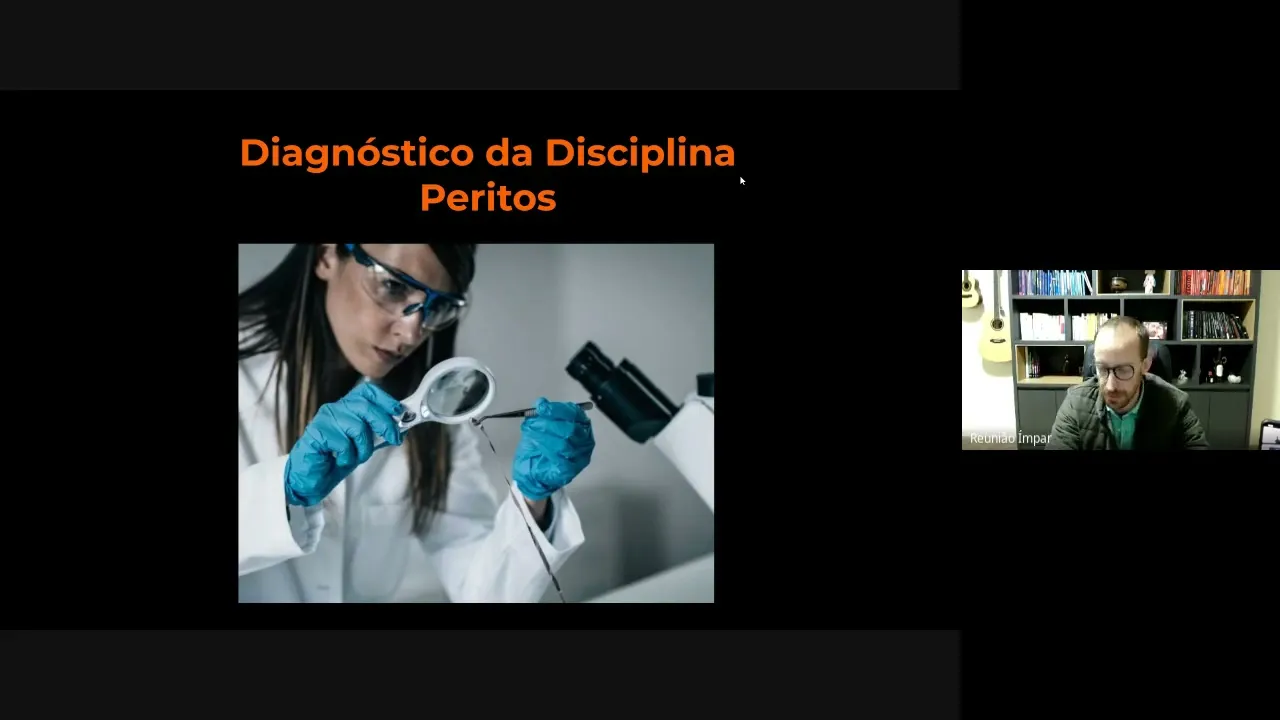 conforme eu vou me desenvolvendo mais eu vou conseguindo entender coisas que eu não tava entendendo antes tá então hoje eu vou Fazer uma construção de muita coisa que já falou para ir aplicando e eu quero que vocês façam anotando as aulas que vocês mais vão precisar ver e rever Beleza cada um vai se preocupando com a sua parte Então o que eu quero é isso aqui ó diagnóstico da disciplina eu quero que você seja um peritos cada um seja perito na sua situação que é meio que eu faço comigo né tudo que eu tô falando
