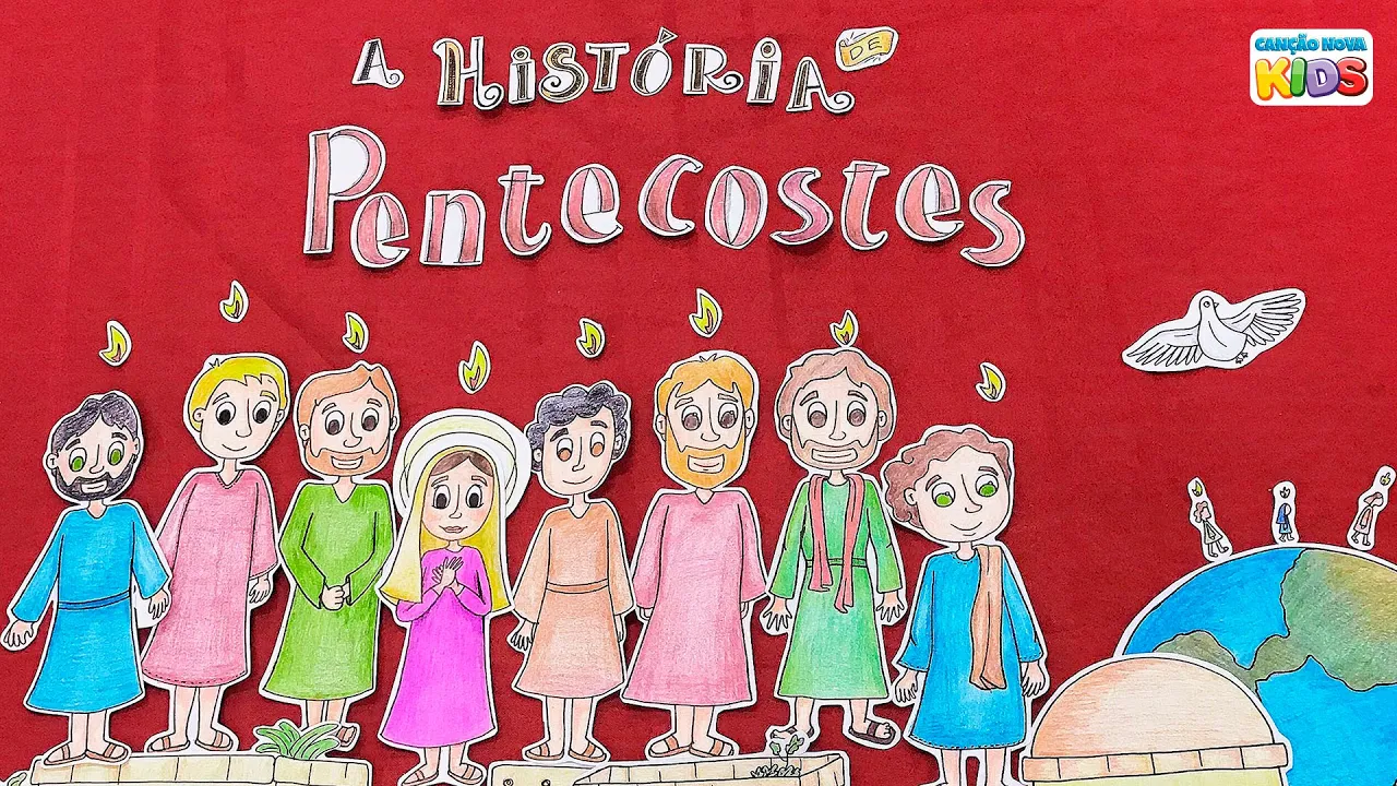 a história de Pentecostes vamos juntos conhecer a história de Pentecostes 50 dias depois da Ressurreição os apóstolos estavam um pouco confusos a respeito do que havia acontecido eles estavam todos juntos e em Jerusalém com as portas do Cenáculo fechadas após tudo que viveram os discípulos sentiram medo e não sabiam o que fazer e sabe quem estava com ele Nossa Senhora e os apóstolos receberam o espírito santo O medo foi tirado de seus corações e eles receberam a força do alto foram batizados no espírito e após Pentecostes pregaram o evangelho por todo o mundo e o