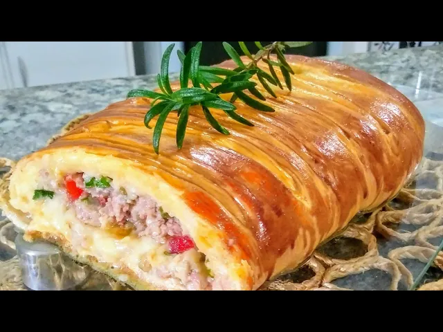 linguiça eu vou colocar mussarela em pedaços ou ralada do jeito que vocês acharem melhor terminei de colocar a mostrar ela e agora vou vir com mais uma camada bem fina do nosso recheio só mesmo para tampar a mussarela eu vou tirar o excesso de massa das laterais e essa massa depois eu posso tá fazendo outro pãozinho melhor tá terminei igualei bem a massa e o que eu vou fazer agora gente eu vou cortar assim o tiras ó até o final terminei de cortar do lado de cá vão fazer a mesma coisa do outro lado ao