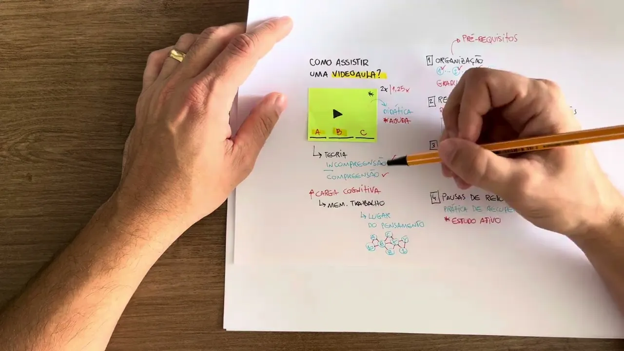 precisa fazer pausando a aula você pode fazer essa anotação de que forma você pode tentar copiar anotar enfim acompanhar essa aula fazendo uma anotação que seja [Música] simples e objetiva geralmente o que que a gente tem aí para recomendar para você como uma anotação simples objetiva que você consegue fazer durante uma vídeoaula eu sempre recomendo para todo mundo que Experimente fazer uma anotação de tópicos que que é isso é o que a gente chama de resumo do preguiçoso mas que não é eh de quem tem preguiça é de quem tem agilidade certo que que é