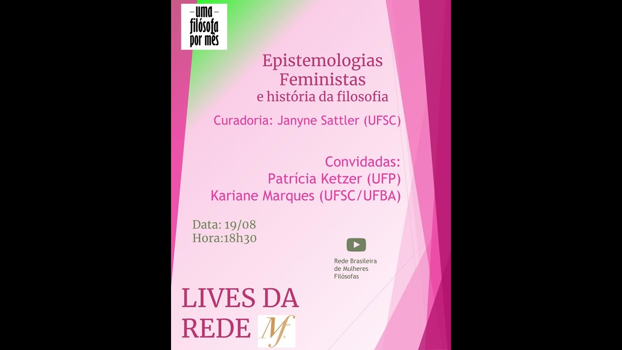 E aí e aí o olá boa noite a todos e todas é bem vindos a mais uma live junto do projeto uma flor sua por mês e da rede brasileira de mulheres filósofas aqui já agradeço a hospedagem aqui e a participação consulta sempre como projeto e agradeço os nossos convidados nikelen witter lá da universidade federal de santa maria e conheço um Tempo sinto saudades e essa é uma oportunidade da gente se ver e camila com campo aqui da usp violentada e agradeço muito a todos vocês para participarem do da laje e do do processo todos