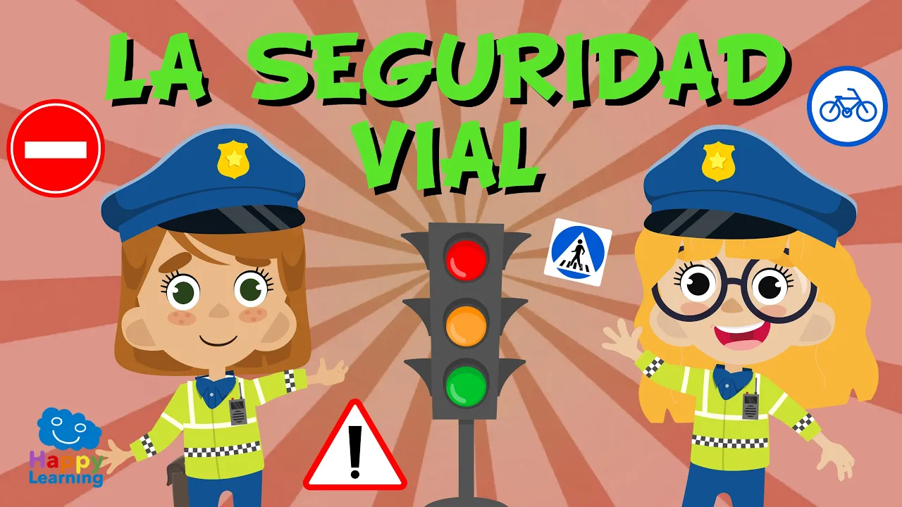 Hola amigos Bienvenidos a un nuevo vídeo de Happy learning Uy qué lío cuánto tráfico es peligroso verdad puede ocurrir un accidente en cualquier momento pero como nadie quiere que pase eso hay una serie de reglas muy importantes que tenemos que conocer hoy vamos a aprender En qué consiste la seguridad Vial en todas las ciudades encontramos peatones que son las personas que van caminando coches con conductores y pasajeros motos autobuses hasta camiones todos van y vienen y algunos tienen mucha prisa por llegar para que no haya accidentes se han creado un conjunto de Señales y normas