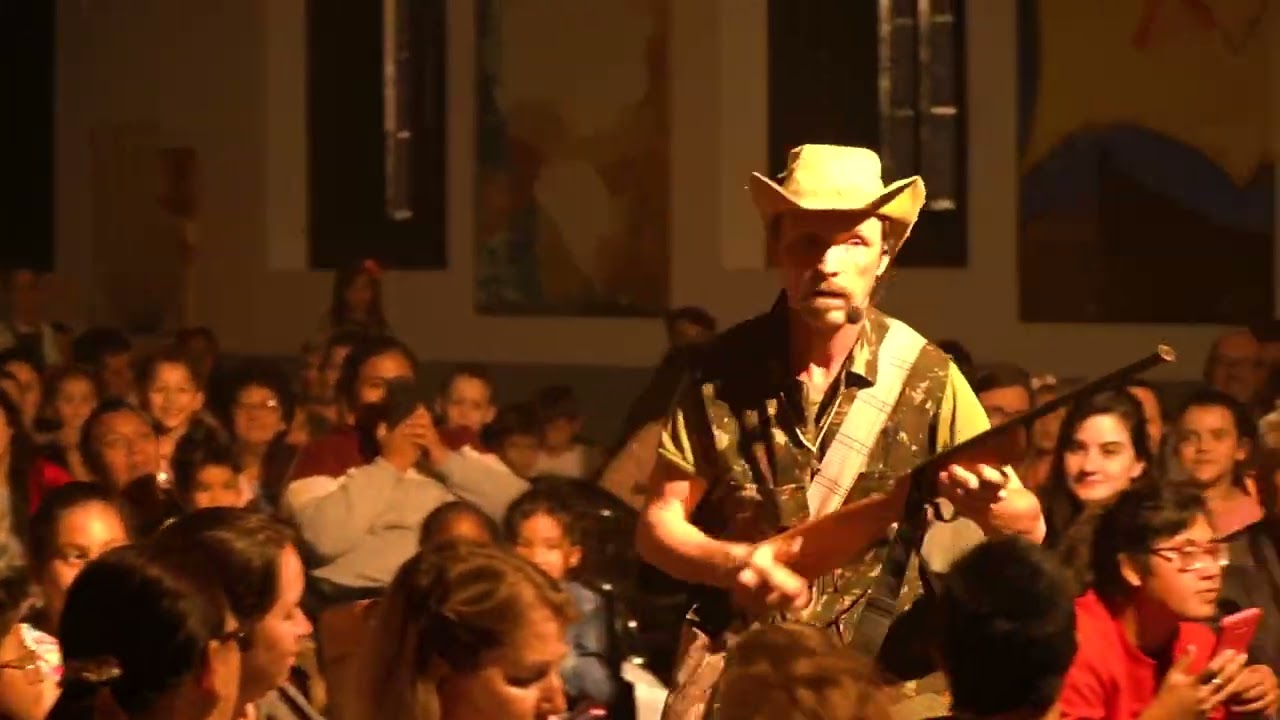 o Olá a todos essa montagem de atral foi realizado através dos recursos da Lei Aldir kleinke e um espetáculo dessa natureza ela sempre requer muita preparação muitos exercícios muitas horas de trabalho de ensaio de produção de confecção de adereços de cenários figurinos mas como fazer tudo isso em meio uma pandemia pode os espaços são limitados Os encontros são proibidos nesse sentido nos desafiamos nos superamos nós fizemos ensaios virtuais online por telefone e quando possível tinhamos alguns encontros rápidos tivemos pausas por conta do isolamento de alguns integrantes foi fácil não mas quando fazer teatro em nosso