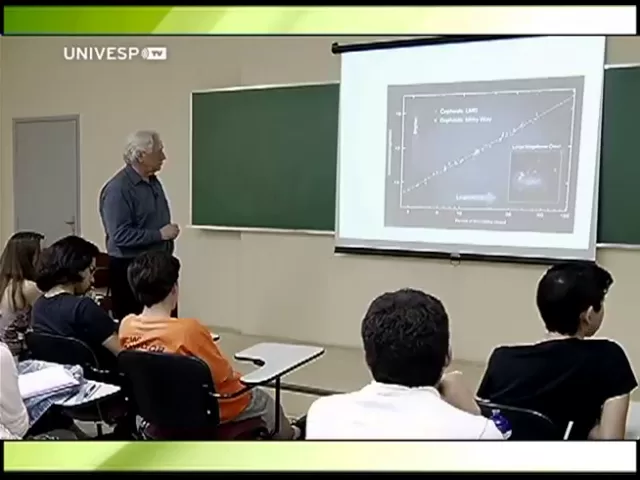 luminosidade em magnitudes e o período é boa para determinações recentes das se feiras da Via Láctea em amarelo e da grande nuve de Magalhães em azul o quanto que esta correlação é é é excelente né bom é sempre muito bom lembrar que a as medidas do rubble não foram perfeitas na verdade imaginava-se na época que existisse apenas uma categoria de estrelas eidas quando na verdade existem dois tipos de estrelas sefe né uma que nós hoje chamamos de feitas clássicas e um outro que nós chamamos de as estrelas w virgines tipo um de ser feita e