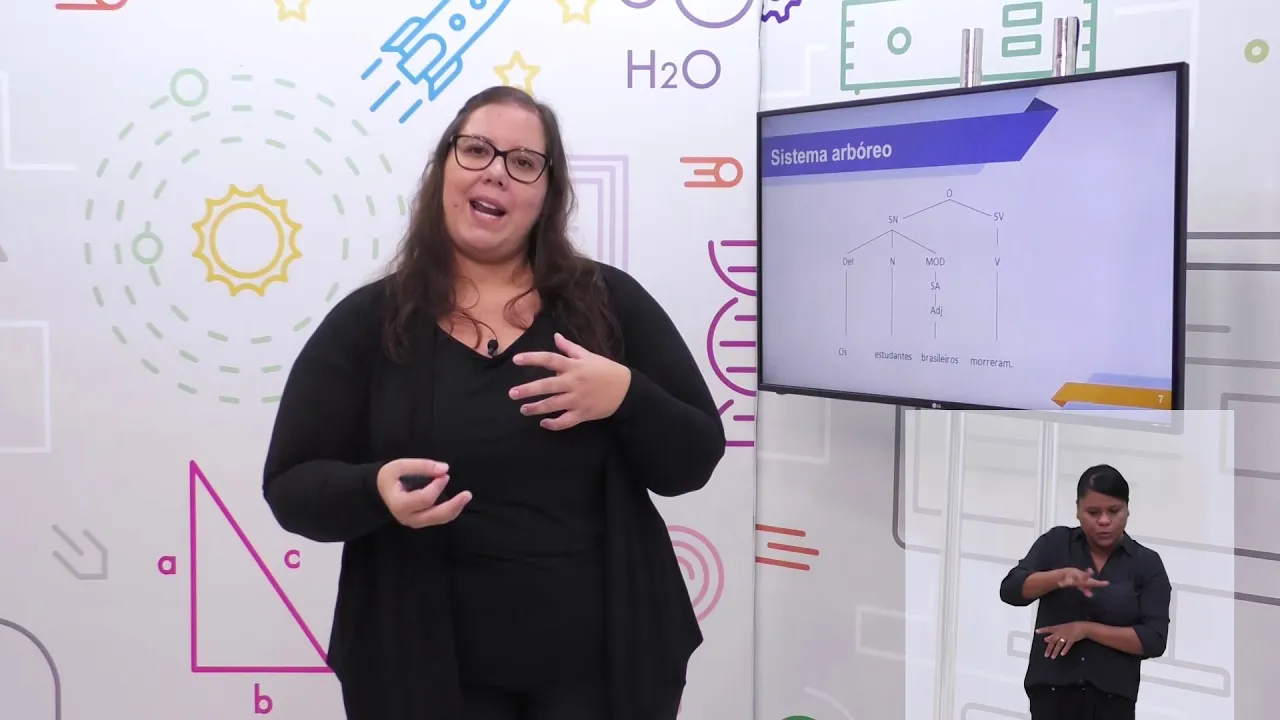 para os ombros que de 1965 um professor e filósofo estadunidense chamado então de diagrama arbóreo foi ele que desenvolveu esse diagrama ou esse sistema arbóreo nesse sistema os sintomas aparecem da seguinte maneira aqui a gente tem então um exemplo de uma construção do sistema arbóreo vamos pegar de baixo para cima a frase total uma frase simples e depois nós vamos subindo esse sistema os estudantes brasileiros morreram essa construção e primeira coisa porque ele é chamado de sistema arbóreo porque assim como numa árvore né temos as ramificações esse sistema é comparado então a como se fosse