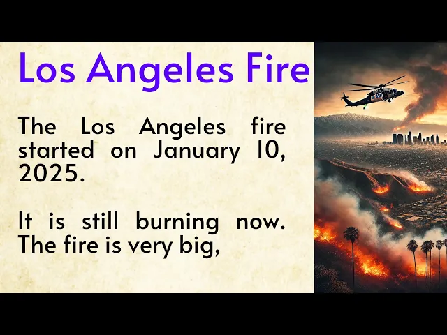 the Los Angeles Fire started on January 10th 2025 it is still burning now the fire is very big and many people are scared a big fire is happening in Los Angeles California many people are worried about it because it is spreading fast the fire is burning in the hills of Los Angeles close to the city the reason for the fire is not clear but experts say it could be because of dry weather strong winds and hot temperatures the fire started in the early morning hours the smoke from the fire is so thick that it can