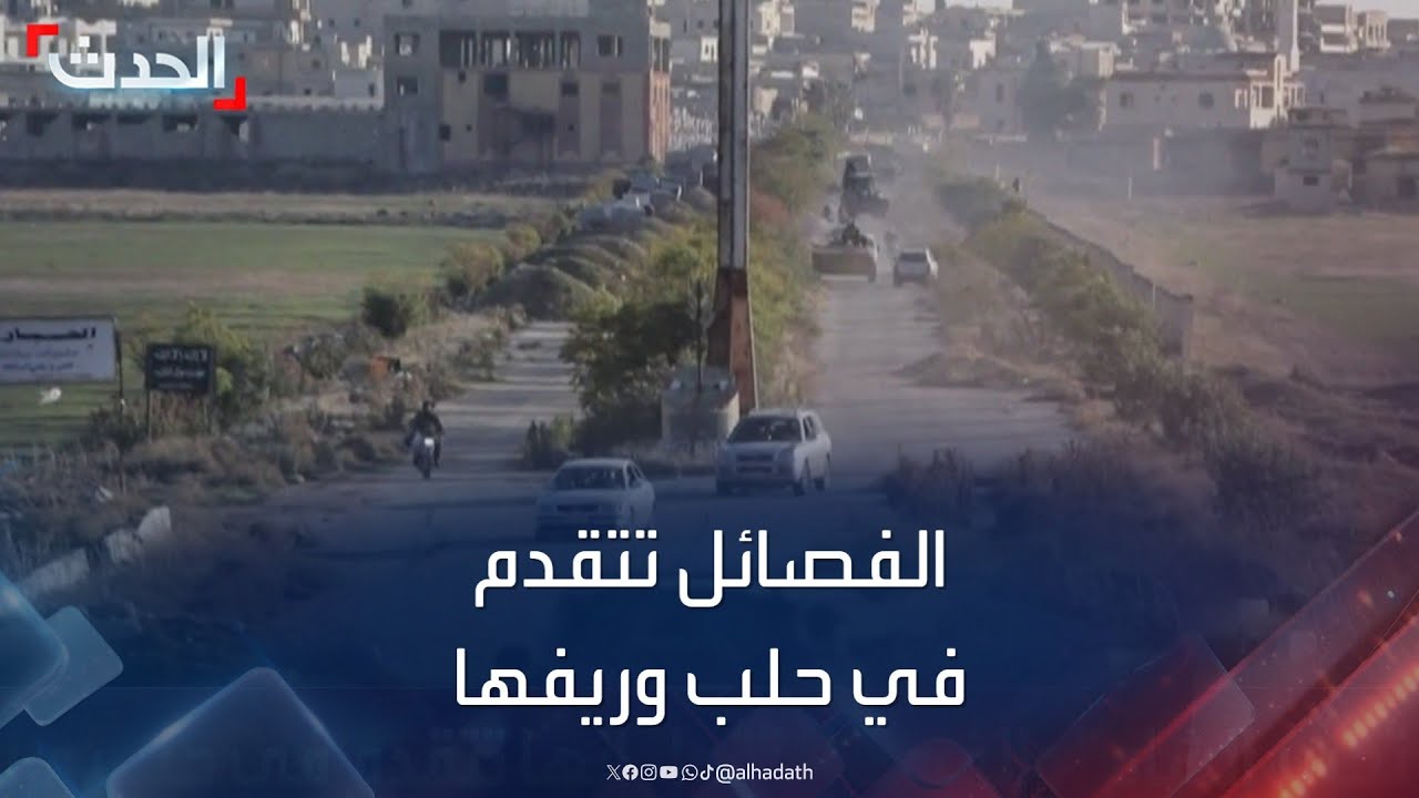صباح الخير واهلا بكم في هذه التغطيه المستمره من قناه الحدث اذا نواصل واياكم هذه التغطيه المتواصله للتطورات المتسارعه التي يشهدها الشمال السوري تحديدا مدينه حلب وهي كبرى من كبرى المدن السوريه والتي بات اكثر من نصف احيائها تحت قبضه جبهه النصره والفصائل المسلحه المت حالف معها في غضون ساعات قليله وذلك عقب الهجوم المباغت التي اطلقته تلك الفصائل فجر الاربعاء انطلاقا من محافظه ادلب المجاوره حيث واصل مصلحون النصره والفصائل تقدمهم داخل احياء مدينه حلب واعلنوا سيطرتهم على مناطق جديده واعلنوا وصولهم الى ساحه صعد الله الجابري التي تقع في قلب المدينه ياتي ذلك بعد سيطرتهم على كامل ريف
