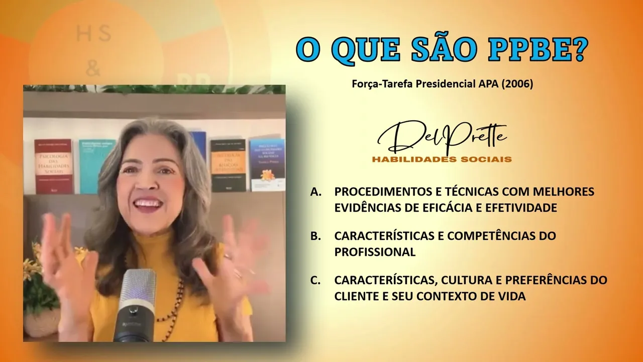 eu posso dizer que o curso que tô ofertando aqui para você foi testado e retest em muitos estudos de avaliação de efetividade e por isso eu posso dizer que estou entregando o melhor para você eu vou deixar indicada aqui a a nessa nessa nessa aula Ah uma live que eu fiz que tá lá no YouTube eh práticas psicológicas baseadas em evidência no campo da competência social e habilidades sociais eu não vou repetir essa Live aqui eu vou sugerir que você também assista essa Live e vou fazer algumas pinceladas aqui porque o nosso foco aqui é