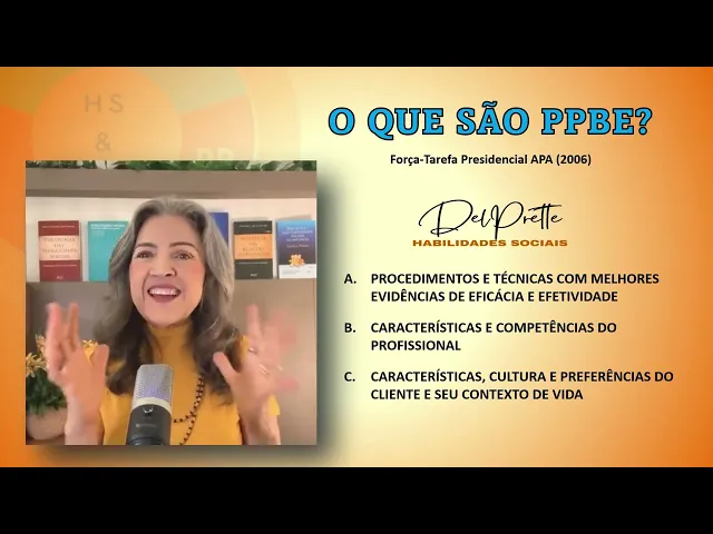 [Música] Olá comal a minha preocupação em trazer práticas baseadas em evidência para você procedimento eh testados validados empiricamente eu não poderia deixar de dar uma aula sobre isso e especialmente eh falar sobre a importância dessa perspectiva na sua formação na sua prática profissional então vamos lá práticas psicológicas baseadas em evidências na promoção de competência social e habilidades sociais e você já percebeu que eu tenho falado bastante sobre esse tema ou seja nós temos um compromisso com práticas psicológicas baseadas em evidências de efetividade e em procedimentos técnicas métodos empiricamente sustentados isso significa com evidências positivas de