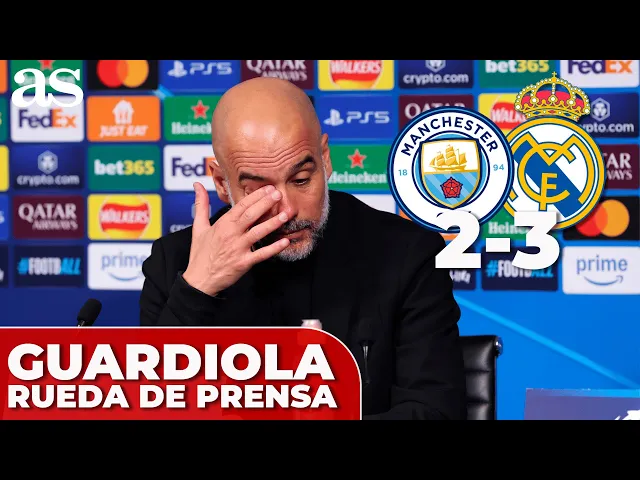 ya no estaba la pancarta Bueno pues cómo analizas el partido de vinicios que parece que le ha motivado esa situación Ah pues creo que vinicios es un extraordinario jugador Hola Pep muy buenas Antonio Romero en directo para la cadena ser he notado cierto tono de resignación al analizar lo lo que ha pasado el partido lo que ha pasado la temporada cree que este nivel del Manchester City le puede dar para eliminator lo intentaremos veremos que ha pasado como ha sido veremos que jugadores llegan frescos Pero intentaremos por supuesto than muchos graas