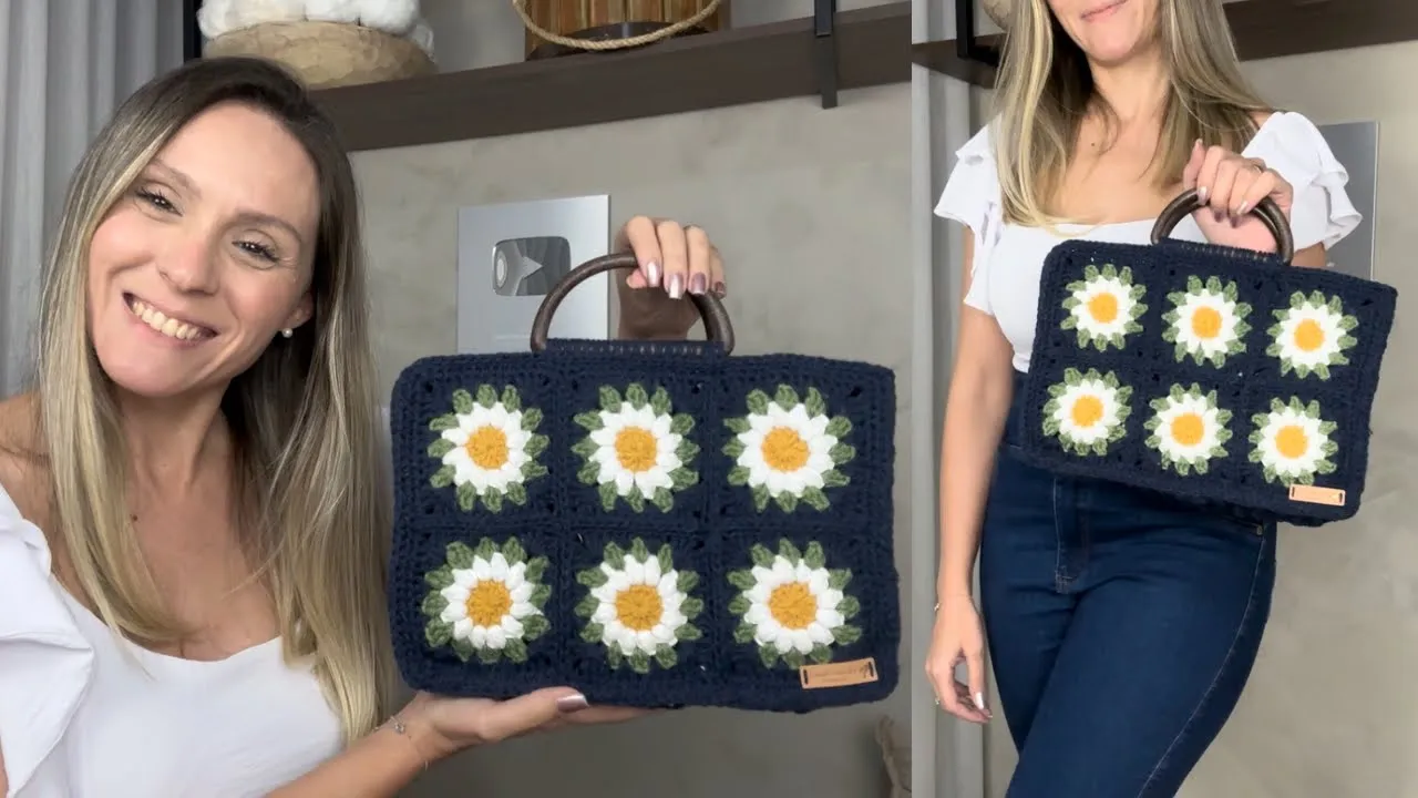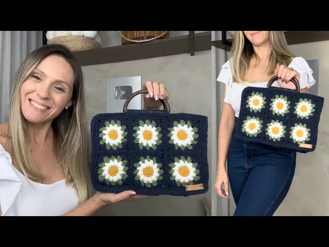 Bolsa de square de margarida/Bolsa de quadradinhos de croche/Granny square bag/Daisy granny square