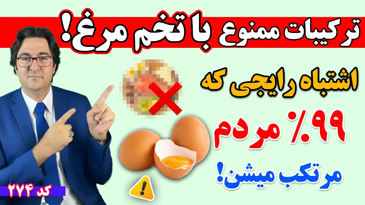 دوستان خیلی وقتا که تخممرغ میخوریم فکر میکنیم داریم یکی از مقویترین غذاها رو به بدنمون میرسونیم اما نمیدونیم که با این موادی که داریم میخوریم به جای جذب بدن وارد فاز دفع و دفاع میشه و در واقع ما برای بدن یک زحمتی داریم درست میکنیم با وجودی که تخممرغ خیلی مفیده خیلی خواص زیادی داره و پیشگیری از آلزایمر میکنه و طبق تحقیقات و پروتئین خوبی داره و به هر حال اطلاعات زیادی شما از تخممرغ دارین که در ویدیو جداگانهی هم بهش اشاره کردیم ولی این ترکیب مفید رو نباید با هر چیزی خورد اولین ترکیب که مضر هست تخممرغ با شیر و ماسته ببینید تخممرغ و لبنیات هر دو منابع غنی پروتئینن اما پروتئینشون متفاوته باعث رقابت در جذب میشه وقتی همزمان خورده میشه به خاطر همین مثلاً کلسیم شیر با آهن و زینک تخممرغ رقابت میکنه و به دلیل یک سری درگیریها و به دلیل این درگیری جذب هر دو کاهش پیدا میکنه. این ترکیب هضم سنگینی رو ایجاد میکنه و چون معده باید همزمان دو نوع پروتئین رو بشکنه باعث نفق و سواهازمه و یبوست خواهد شد. پس این اولین ترکیب موزر با تخممرغ هست.
