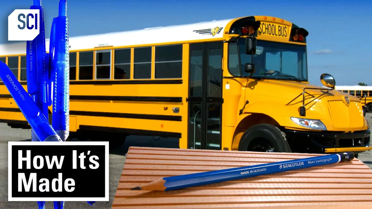 the barrel this company's engineering of its inkflow channels and tip delivers on average 2 and 1/2 miles of writing per [Music] cartridge the big yellow school bus puts millions of children on the road to an education it all started in the 19th century with horsedrawn trucks known as kid hacks the word hack was short for hacking carriage in the 20th century they were motorized and became known as school buses every school day children across North America wait for the school bus appearance-wise it's hard to miss big in yellow it is deliberately conspicuous designed to stand