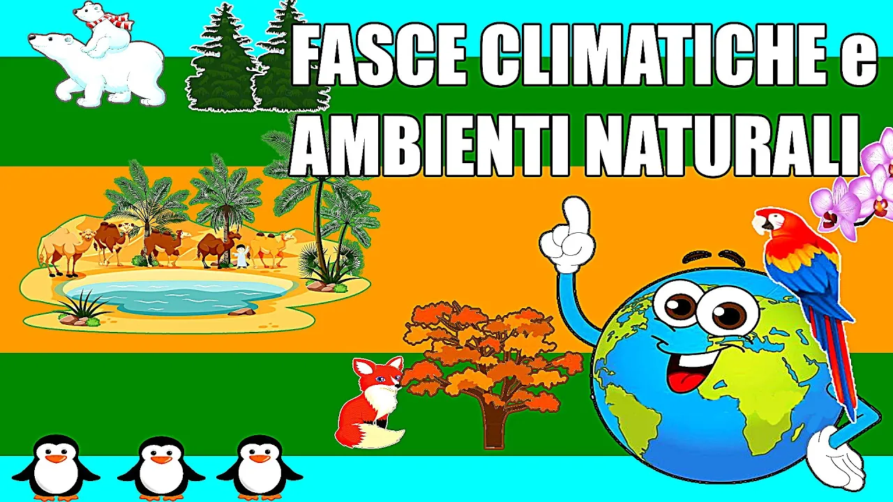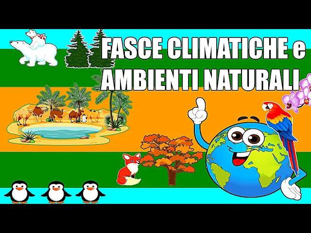 ciao amici oggi parleremo delle mie fasce climatiche e degli ambienti naturali che si trovano in ognuna di esse seguimi il principale elemento che condiziona il clima è il sole che ci scalda e illumina le nostre giornate i raggi del sole però raggiungono le varie zone del nostro pianeta in modo diverso all'equatore i raggi arrivano perpendicolare al terreno quindi scaldano molto mano a mano che ci si allontana dall'equatore però i raggi solari cadono sempre più obliqui e per questo che ai poli fa così freddo la diversa inclinazione dei raggi solari rispetto alla superficie terrestre determina così