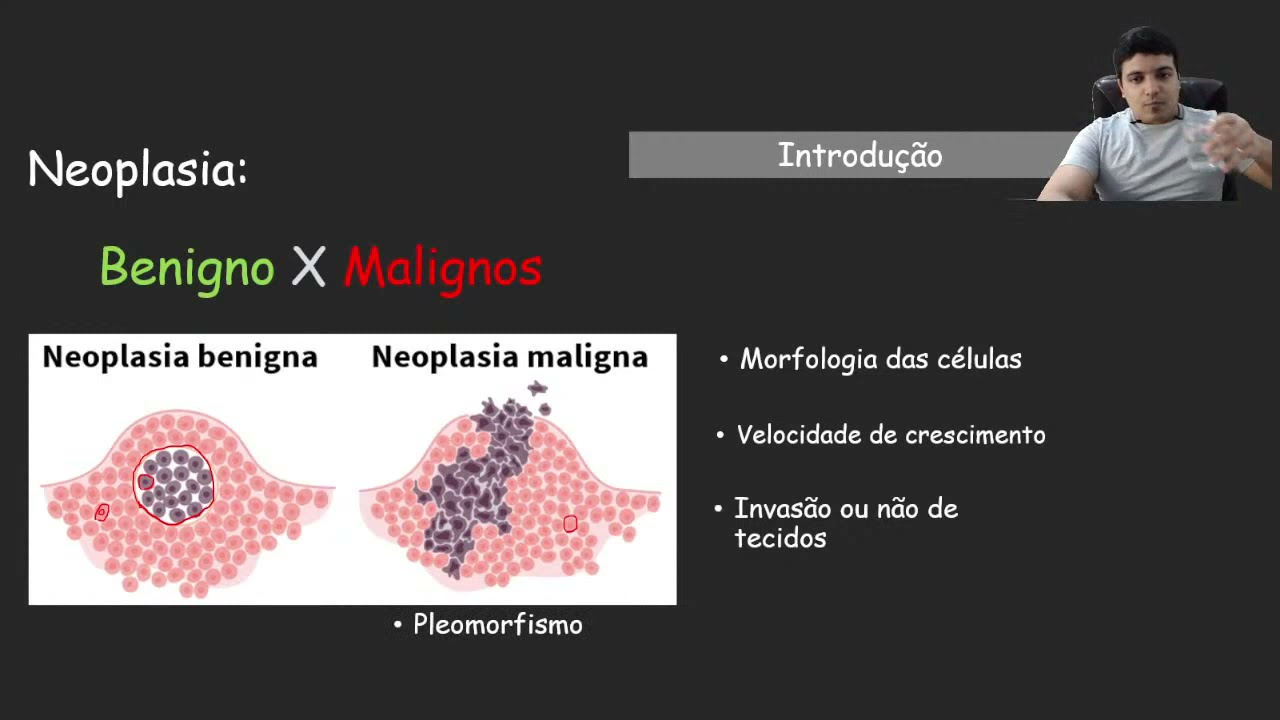 câncer mesmo é o que seria o maligno ou benigno a gente não chama de câncer então a gente chamaria de tumor benigno uma neoplasia benigna agora quantas e termina câncer aí realmente o mais correto é já está tratando do tumor maligno é o realmente é um problema de saúde pública Mundial até pelo fato Como eu disse vem Crescendo a cada ano aí a prevalência o surgimento desta patologia e o câncer ele é caracterizado como uma doença genética porque vai ser algum erro em alguns Gene né que vai perder Aí sua função vai ganhar função nova