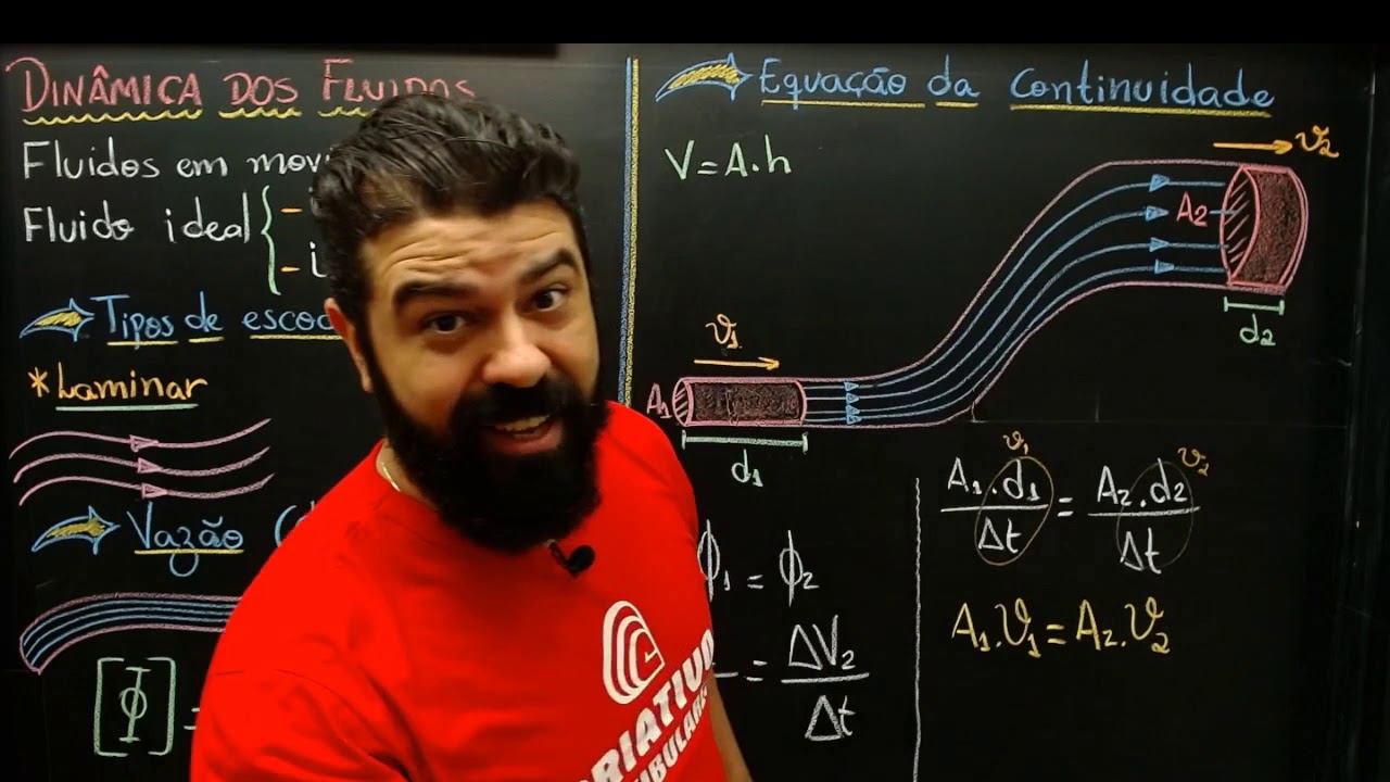 E aí beleza pessoal tudo bem com vocês hoje falaremos sobre Mecânica dos fluidos e aqui nós teremos uma pequena explicação do que nós veremos na hora de hoje vamos ser uma breve introdução falar sobre densidade pressão logo em seguida iremos diferenciar hidrostática e hidrodinâmica falaremos sobre o Princípio de Pascal o princípio de Arquimedes princípio de Steven vazão e equação da continuidade Então bora começar sobre densidade porque se a gente vai falar sobre hidrostática e hidrodinâmica passo Primeiro vamos falar sobre densidade a palavra densidade geralmente é aplicada sólidos e vocês devem lembrar que a densidade é dada por massa sobre o volume outra nós somos de densidade de líquidos ou de cidade de gases geralmente nós falamos sobre o massa específica quando é aplicada fluídos Lembrando que fluídos pessoal é tudo aquilo que flui o ou seja os líquidos e os gases como calcula do mesmo jeito Inclusive eu continuo representando por de densidade eu prefiro assim Acho muito mais simples então a massa específica de qualquer fluido é dada pela massa sobre volume e quando vocês escutarem afirmação massa específica se lembrem que é exatamente a mesma coisa que a densidade Ok Além disso Como calcular a pressão lá para os óleos de novo a pressão e data por força sua uma determinada área então quando eu tenho força sobre Área eu tenho a pressão aplicada a um determinado. A força pessoal ela é dado em newtons e a área metro quadrado então unidade de medida da pressão é newton por metro quadrado que nós chamamos de Pascal representados pelas letras PA assim que terminar um cálculo de pressão a gente termina feito todo no sistema internacional coloca o resultado em Pascal pa mas quando a gente fala pressão em fluídos o cálculo dele é dado por D GH aonde de é a densidade G é a gravidade E H é a nossa profundidade Então imagina que eu tenho determinado líquido e eu quero saber qual é a pressão nesse ponto eu tenho essa profundidade esse H A gente já vai ver aqui a diferença daqui a pouco para sistemas abertos e sistemas fechados Tá mas a princípio a pressão causada pelo líquido só o líquido de GH Vou colocar aqui de novo pressão densidade de quem estado líquido gravidade local e a profundidade a qual eu estou me referindo porque a pressão nesse e aqui pessoal é diferente da pressão neste ponto porque porque essa altura aqui é diferente Ou seja essa profundidade por ser menor a pressão nesse ponto vai ser menor quanto mais profundo maior a pressão exercida perfeito Então vamos lá falar sobre pressão e sistemas abertos e sistemas fechados eu vou colocar primeiro que o sistema fechado que a gente acabou de ver a fórmula se que eu tenho um determinado líquido e sistema está fechado eu tenho esta profundidade o cálculo é dado só pela pressão que é igual a de. gh densidade do líquido gravidade e altura mas se o sistema for aberto Igual estava desenhando antes e não falei sobre ele além da pressão causada por toda essa coluna do líquido e nós temos a pressão = D o GH Lembrando que a densidade a densidade do líquido aqui ainda tem a pressão atmosférica atuando pessoal então neste caso eu tenho a pressão do líquido se o sistema está aberto mas a pressão atmosférica então em Lagos rios a represa As Piscinas Que sistema é aberto em cima eu não posso esquecer de somar a pressão atmosférica então mais a pressão atmosféricas que a nível do mar a pressão atmosférica vale 10 a quinta Pascal aproximadamente perfeito então eu sou Maria mais um vezes 10 a quinta ou simplesmente dessa quinta porque um X10 é quinta é a mesma coisa que 10 a quinta perfeito então somar um vezes a quinta ou somar dez a quinta lembrando então que a diferença do sistema fim e o sistema aberto é a soma da pressão atmosférica eu não posso esquecer de somar essa pressão se o sistema for aberto tá bom hidrostática e hidrodinâmica qual a diferença básica entre as duas quando eu falo em hidrostática o que eu tava vendo agora pessoal estudo suíço que se encontra em equilíbrio estático parado em repouso ou dinâmico com velocidade constante então em movimento uniforme então se eu tenho líquido parado ou em movimento uniforme e listrado pela hidrostática Ok mas eu tenho um fluido que ele está se movimentando de maneira mais Geral com velocidade e acelerações variadas aqui eu tenho então a hidrodinâmica com o objeto de estudo então encontra um estudo os fluídos táticos Oi livre dinâmico aqui o estudo dos fluidos em movimento também só que não com velocidade constante com as mais diversas velocidades e aceleração então eu tô estudando aqui um movimento variado notem que pode ter aqui também o movimento uniformemente variado mas de maneira geral é um movimento variado pode ter todo tipo de aceleração e todo tipo de velocidade dentro da hidrodinâmica é o primeiro princípio que nós veremos é O Princípio de Pascal quando nós falamos O Princípio de Pascal pessoal Imagine você um recipiente que tenha: qualquer que eu posso pegar aqui dentro ou até o terceiro ponto quarto.