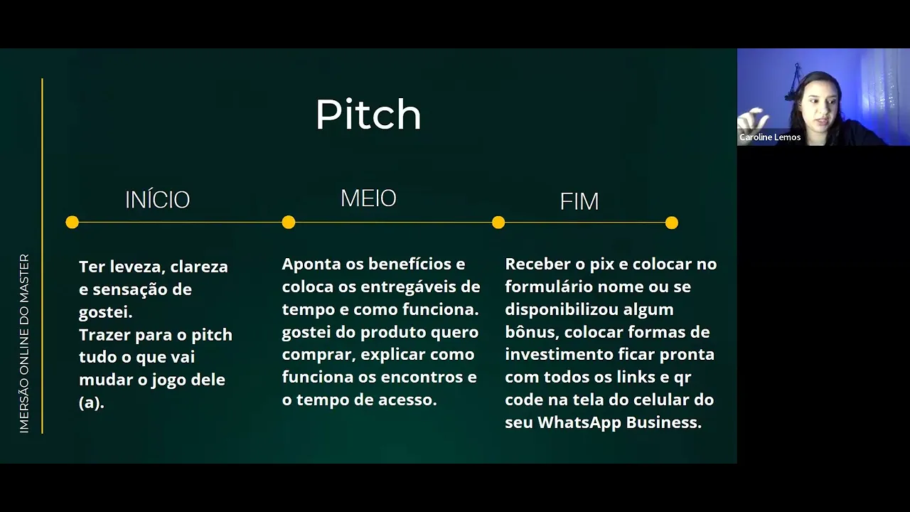 ela está lá no movimento do evento presencial entendeu porque senão ela não tinha saído de casa né E outra coisa lembrem sempre que na hora do Pit vocês não estão fazendo por vocês vocês estão fazendo por por pelas pessoas que estão Ali no evento presencial e que vocês precisam transformar a vida dela tá então lembra sempre disso nesse momento do Pit tá depois trazer aí para o pit tudo que vai mudar o jogo dela então você vai trazer todo o teu processo Ah eu tenho lá 10 aulas duração de 3 meses e vai dar 46