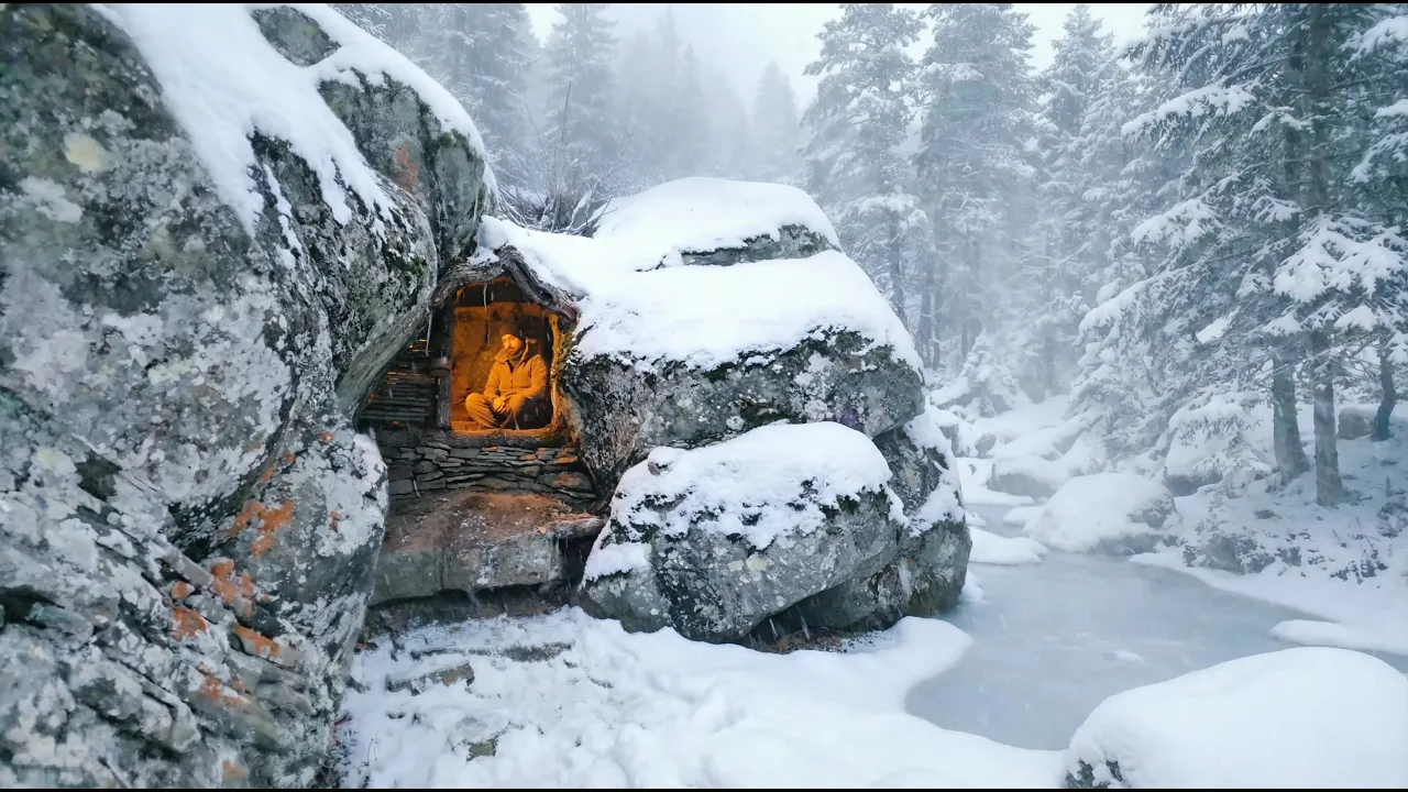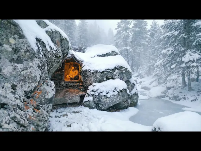 Bulding a Cave Shelter - CAMPING ALONE IN HEAVY SNOW