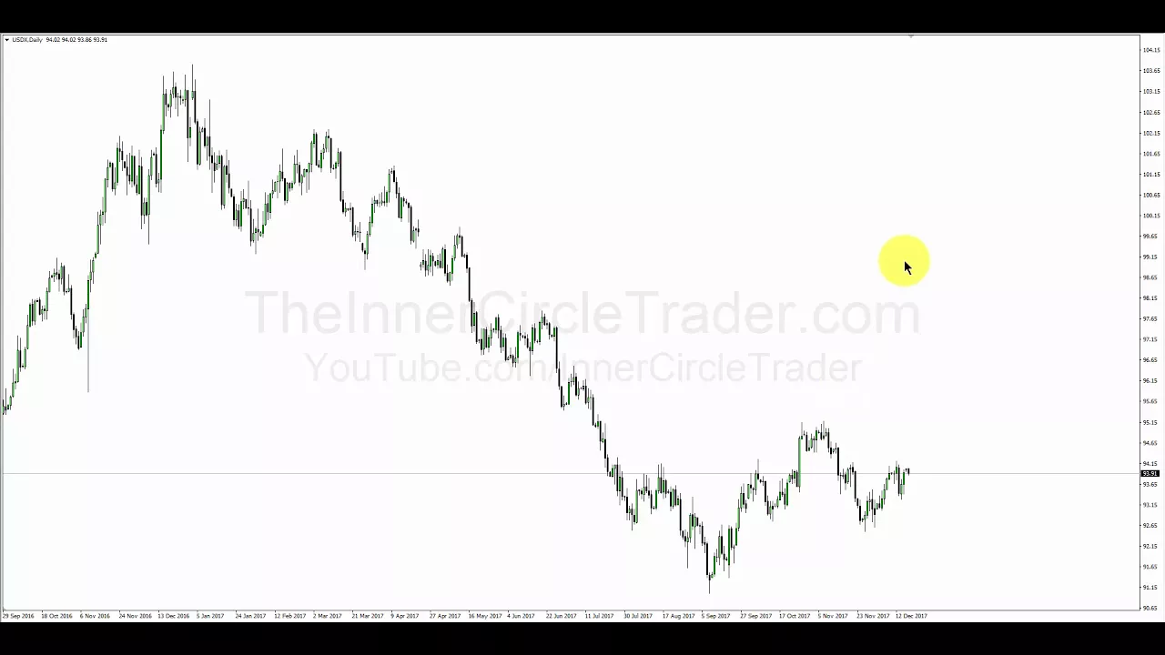 trading or scalping so climate analysis concepts where an individual that has that limitation it has that limitation what is available in terms of analysis or techniques that we can more or less ferret out an opportunity to practice with our demo account so what I like to do is number one I like to cycle through all the majors but I begin with the dollar index and from a dollar daily okay we can see that we have been trading lower ever since around August we've been consolidating and going sideways now the prevailing trend has been down for