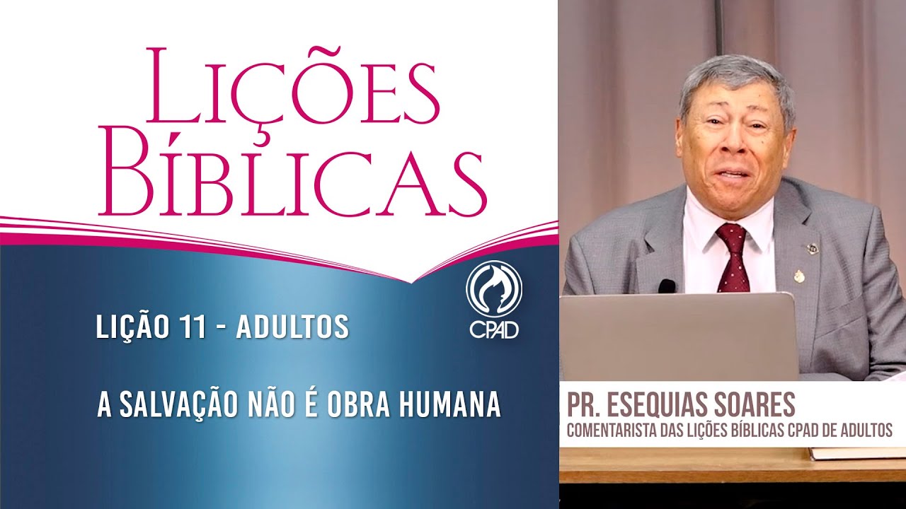 Muito bem glória a Deus nós estamos aqui juntos e unidos para mais uma EBD online e nós temos a nossa lição a lição aí pastor luí qual é lição de número 11 a salvação não é obra humana a salvação não é obra humana vamos lá primeiro ponto a salvação sobre a graça de Deus segundo ponto so teologias inadequadas na antiguidade terceiro ponto so teologias inadequadas ou muito bem vamos lá ao nosso tema geral Texto áo e verdade prática lição de número 11 texto Auro não pelas obras de justiça que houvéssemos feito mas segundo a sua