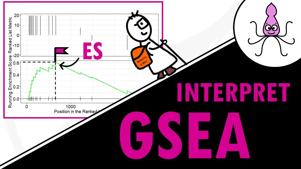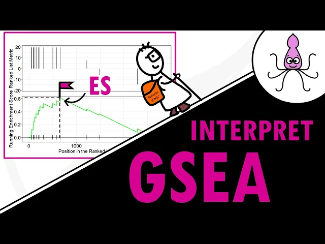 hello and welcome to biostat squid in my previous video I explained the main Concepts behind gsea so if you're not familiar with this type of pathway enrichment analysis method you might want to check it out first in this video I will focus on how to interpret the results from gsea and to interpret the plots let's Dive In so there are four key statistics that Gene session enrichment analysis will give you so we have the enrichment score or yes the normalized enrichment score or NES the false Discovery rate FDR and the nominal p-value we will go