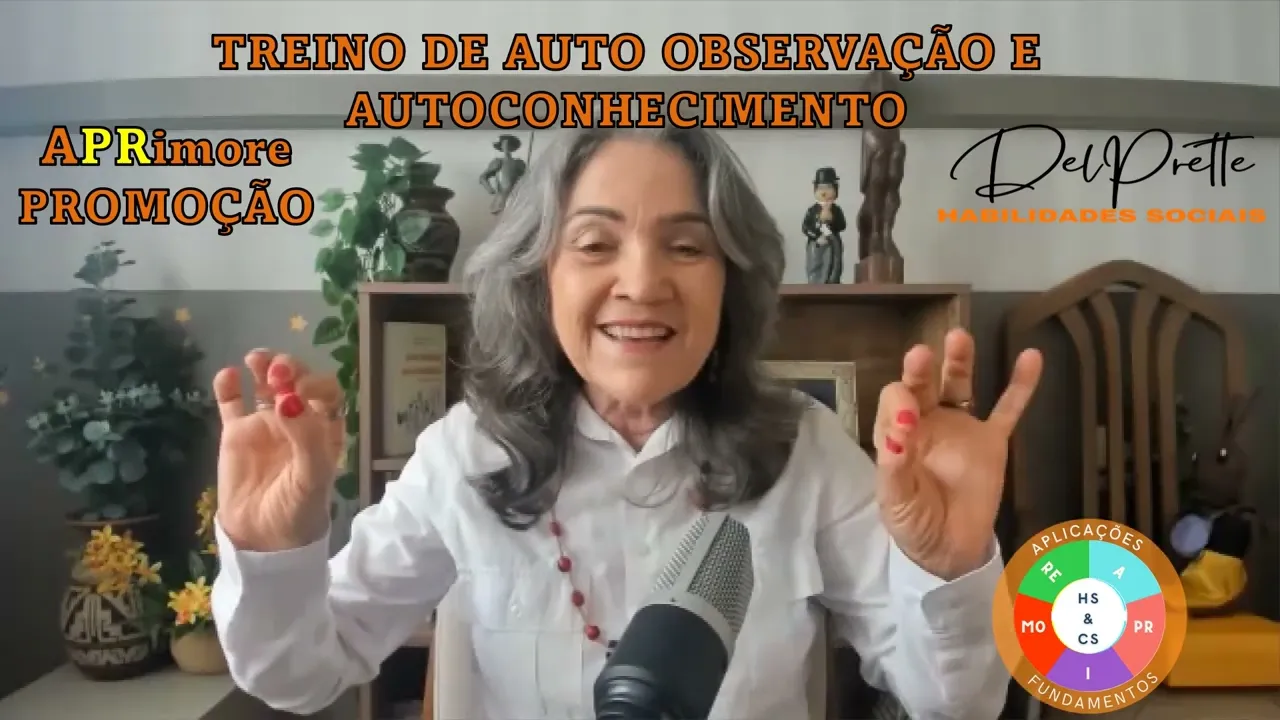 [Música] e a nossa aula de hoje é sobre treino de auto-observação e autoconhecimento que na verdade se Embasa no treino de observação Ah nós podemos dizer que a habilidade de observar é uma das mais básicas paraa competência social Você sabe por quê Porque ela está na base da automonitoria na base da análise de contingências do autoconhecimento do conhecimento sobre o ambiente social enfim em cada uma das habilidades sociais que que nós vamos a promover dentro de um programa de competência social e habilidades sociais enfim todos aqueles requisitos que nós chamamos de requisitos da competência social