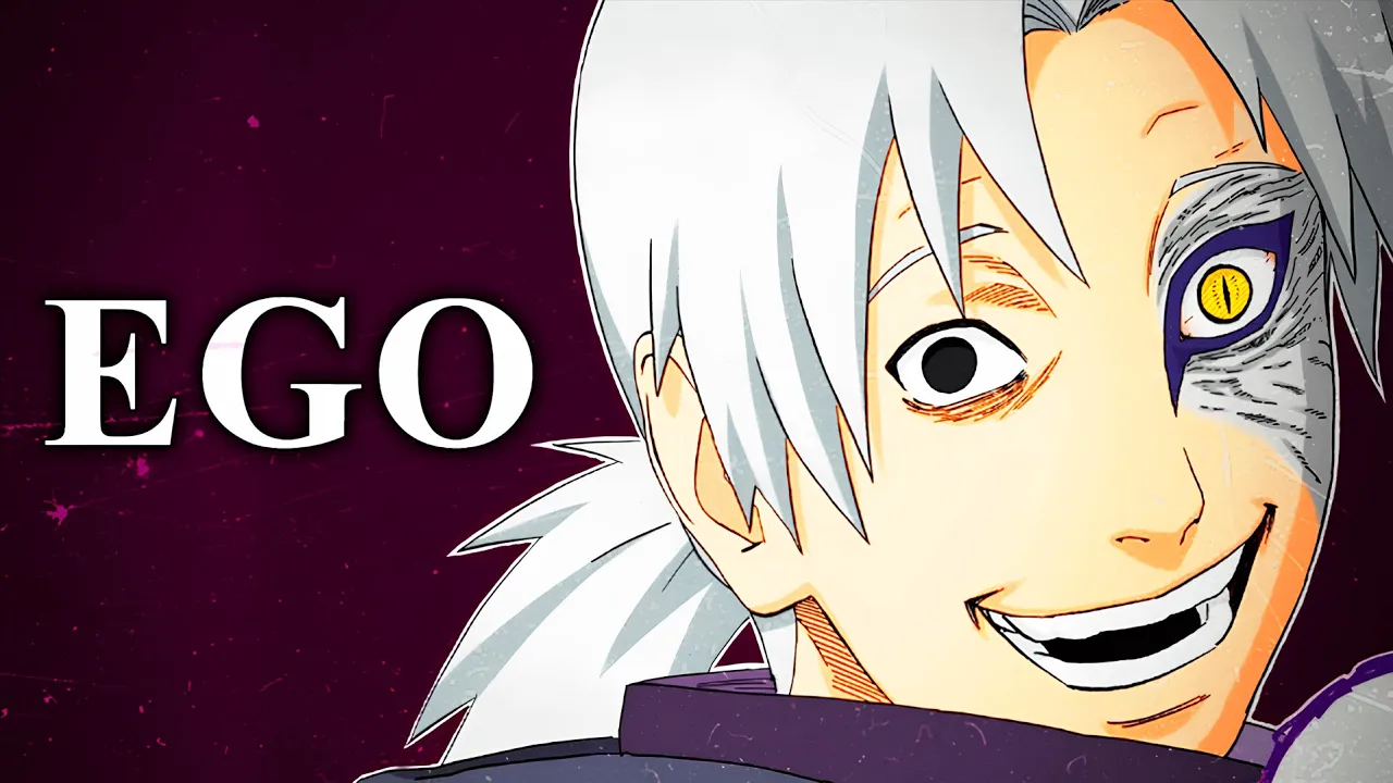 ego o ego de Kabuto é confuso ele absorveu tudo e todos para drenar o melhor de cada subordinado do som seu ego se mesclou com orotimaro ao ponto dele se ver como uma versão superior do mesmo diferente de Sasuki que se tornou um Falcão caboto evoluiu para um dragão algo muito além dos céus em sua barriga vemos o crescimento de uma Serpente Branca e esse detalhe não é por acaso em diversas religiões a região abdominal é dita como o local onde ocorre a transferência da alma do indivíduo dessa forma a aparição de uma Serpente no