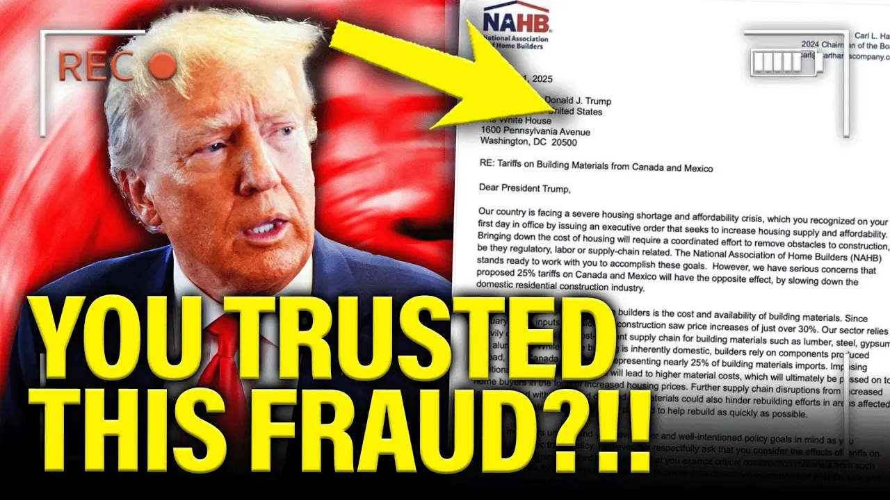 this group right here the National Association of homebuilders a Bastion of liberals and progressives I'm joking of course they represent builders in the construction industry and they were very supportive of Donald Trump I'm sure not the whole organization but at the high level they were um happy when he got elected they' say nice things about him they're saying oh his America First policies look amazing well now they're sending a letter to Donald Trump saying that our country is already facing severe housing s shortages and affordability crisis which we thought you recognized in one of your