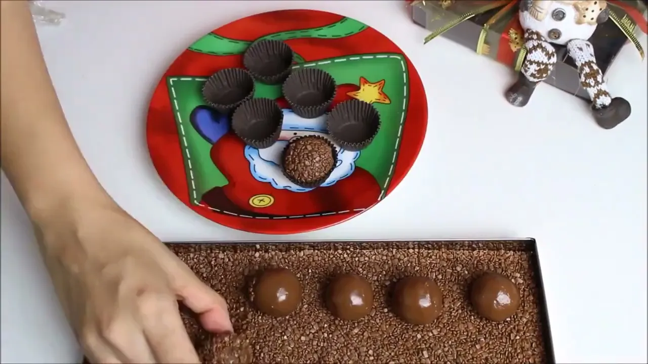 as frutas cristalizadas também então a gente vai pegar esse planeta ninguém vai desconfiar de tudo e vai umedecer ele com água e um pouquinho de leite condensado [Música] do nosso [Música] as bolinhas de brigadeiro brigadeiro e coloca a e esse é o brigadeiro mais prático e mais vendido para época do Natal e [Música] e agora atrás da outra dica para você nessa época do ano é bom a gente tá colocando tudo combinando com o Natal não só as embalagens com os granulados também o dinheiro lá no céu peças de chão e essa opção eles são