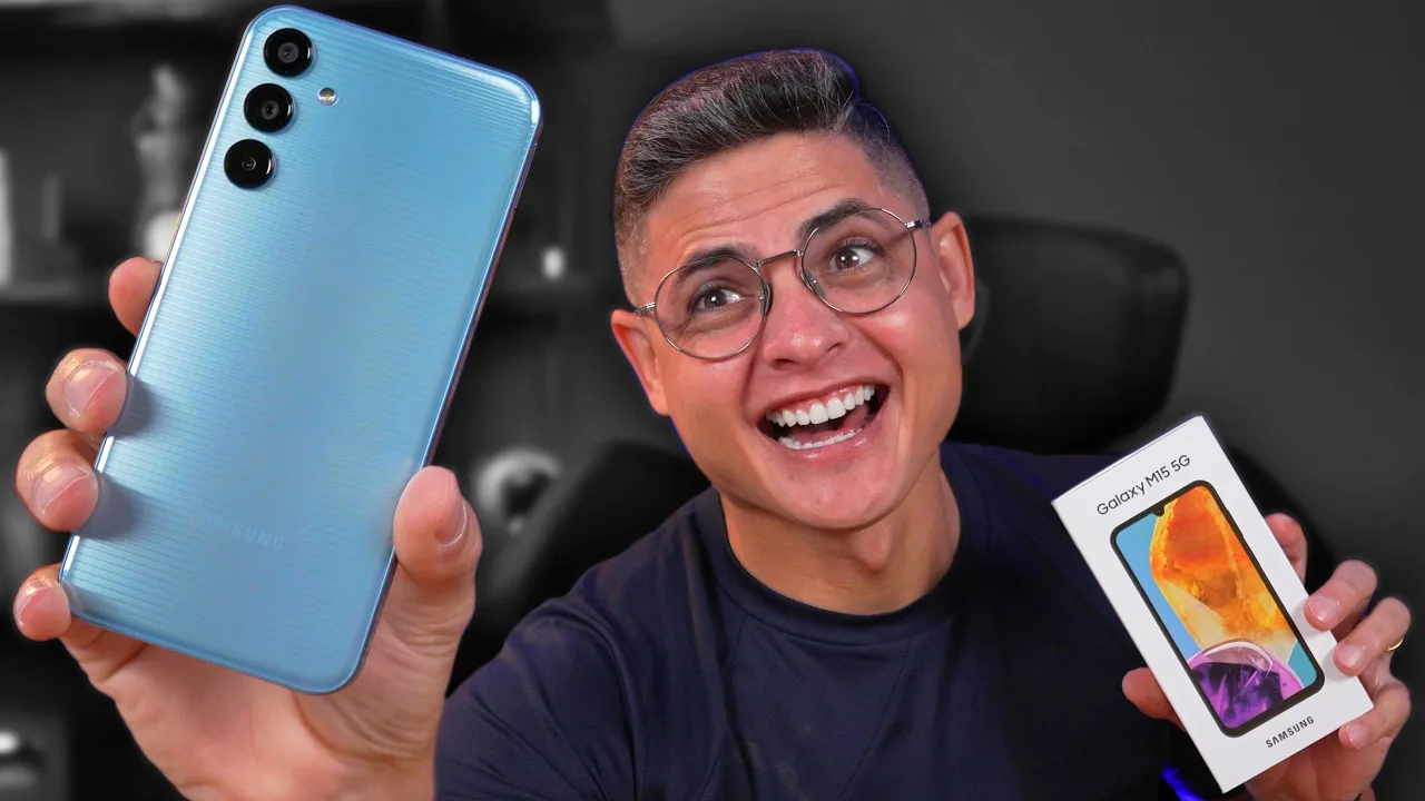 Pois é pessoal resolvi trazer esse sem vergonha aqui pro Canal Galaxy M15 5g Porque sim recentemente eu trouxe o a15 5g que se mostrou ser um aparelho muito mas muito interessante E aí vocês me pediram Jeziel rapaz traga o M15 que eu quero saber se o bicho é arretado igualmente o a15 pois tá bom trouxe tá aqui no canal vou gravar o unboxing e primeiras impressões então é o seguinte já deixa o seu like e roda a [Música] vinheta Mas aí você olha para mim e diz Jeziel rapaz deixa de conversa macho é o mesmo celular mesminha a Samsung só mudou o nome rapaz vocês estão ligados demais tu é doido Dá para vocês apresentar os vídeos aqui do canal mas não tem uma pequena diferença ou não tão pequena assim a bateria do m155 G é maior do que a bateria do a15 5g Então guarda essa informação que eu vou explicar melhor no decorrer do vídeo porque agora eu quero mostrar PR vocês as Funça desse fio de uma égua vou meterlo canivete aqui para cima ó lacradinho como vocês estão vendo versão aqui ó Eita rapaz Não fuja não 4 GB de memória RAM com 128 de armazenamento interno na cor azul claro mas vamos lá vou tirar ele aqui aqui de dentro porque logo de cara a gente já vê alguma das características como por exemplo a sua câmera tripla né no caso a principal traseira com 50 megap de resolução temos a câmera selfie de 13 megap tela aqui de 6. 5 poleg com 90 hz de taxa de atualização resolução full HD Plus Super AMOLED a Samsung Sempre coloca a tecnologia Super AMOLED nos seus aparelhos mesmo quando eles têm a proposta de ser mais baratos né mais custo benefício aquele aparelho mais acessível para quem não quer gastar muito mas também não abre mão de uma boa tela de boas configurações isso eu acho que é muito importante o que a Samsung vem fazendo não só a Samsung para ser bem sincero praticamente todas as marcas hoje em dia e fazem isso né ão estão colocando tecnologias mais avançadas que realmente é muito bom quando a gente tá mexendo E no caso de uma tela Amoled com 90 hz de taxa de atualização dá para considerar sim uma boa configuração e sobre o carregamento pois bem aqui ele já deix deixam bem claro o seguinte carregamento super rápido de 25 w que realmente é um carregamento bom de 25 w mas olha só suportado isso quer dizer que o carregador de 25 não vem dentro da caixa geralmente eles colocam um carregador Zinho fuleiro que eu vou mostrar para vocês já já Então esse é um ponto interessante como esse aparelho tem uma bateria maior do que a da linha a ele vai demorar mais para carregar mesmo você utilizando o mesmo carregador Ele tem 1000 Mah a mais a linha a tem 5000 Mah que é o padrão de mercado é o normal e esse aqui tem 6. 000 Mah então para você que por exemplo é trabalha distante e não tem acesso ali a uma tomada no seu dia a dia quanto mais Bateria geralmente é melhor não é a tua que eles já dão ênfase aqui né eles coloca logo bateria de longa duração com 6.