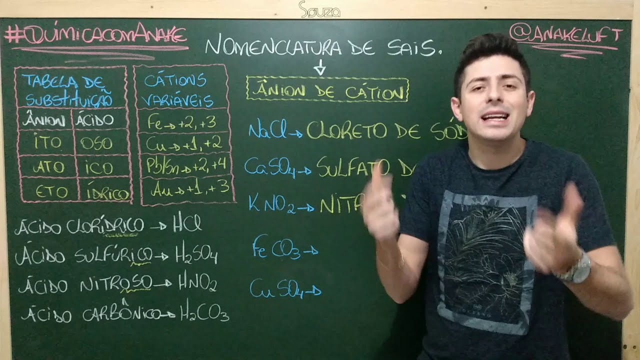 de sódio as regras de nomenclatura para os compostos inorgânicos podem ser bem desafiadoras para muitos alunos e É muito raro que se Cobra esse conteúdo em Provas o que aconselhamos portanto é que você há milhares em com os principais compostos presentes no nosso dia-a-dia e então tem que refletir sobre a nomenclatura desses compostos podemos citar por exemplo o n a c l ou cloreto de sódio que é o principal constituinte do sal de cozinha e é também muito utilizado como conservante de alimentos O cloreto de sódio é obtido por meio da evaporação da água do