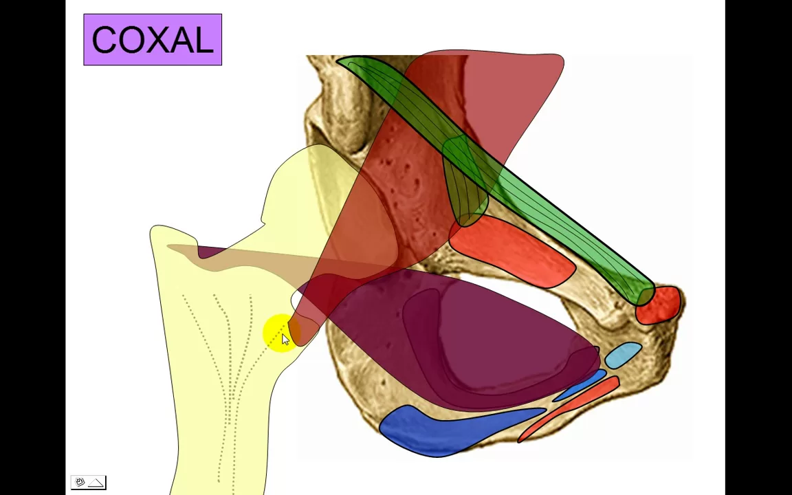 en esta vista antero externa los músculos en el marco óseo a nivel de la rama isquiopubiana Entonces teníamos una línea más profunda o más superior que correspondía al uador externo una línea media donde teníamos aproximador menor aproximador medio y aproximador mayor la banda media corresponde a los aproximadores y una banda más interna que corresponde al recto interno que no lo dibujé Este es el cuadrado crural semimembranoso biceps y semitendinoso esto qué era esto era la espina asiática donde se insertaba el elevador del ano del lado de adentro y del lado de afuera el gémino superior