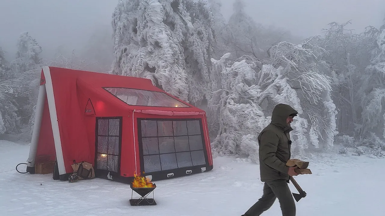Özgür: Look at this. Özgür: The top will come down. Burcu: I've been camping in nature for so many years, this is the first time I've seen something like this.