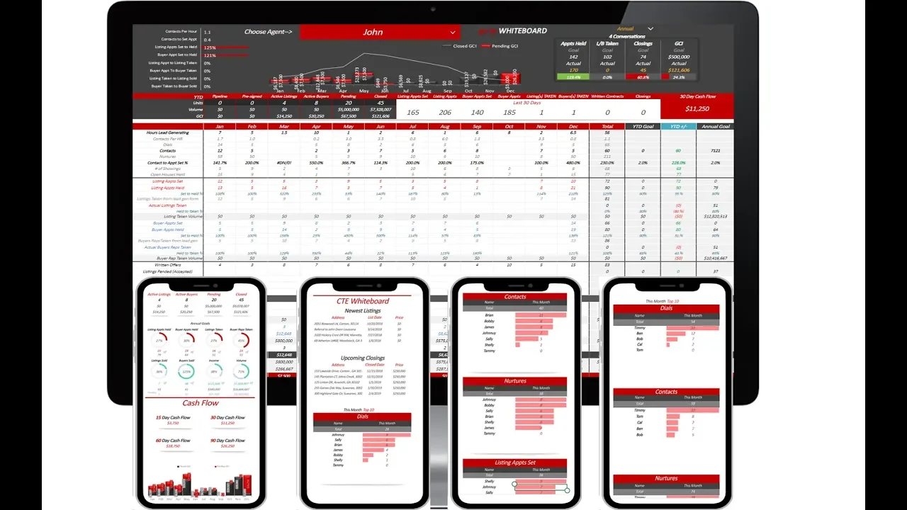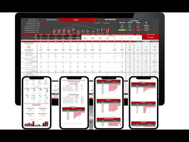 they don't know when to step on the gas this is gonna allow them to be able to see that you'll also have an income chart down here at the bottom black will be closed and then bread will be all of their pending income they will be able to see all of their new listings on the whiteboard upcoming closings they'll see all the competition boards as well so for the lead generation activities who's doing what they can report their numbers right from their phone as well but they'll be able to see all of that on the