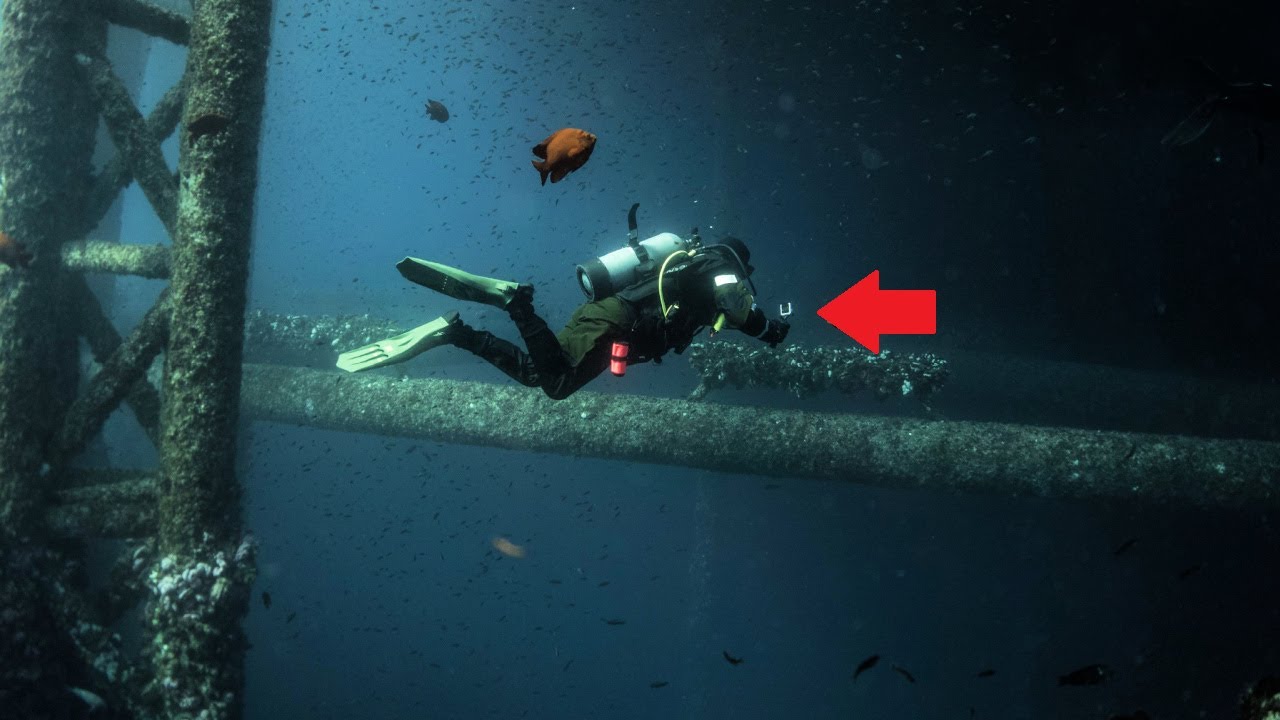 For commercial diving, divers often have an umbilical cord attached to them to supply them with air rather than tanks. This way, they can stay down indefinitely without running out of air. Once this was all tested and ready to go, Luke slipped into the water for what was gonna be at least 15 minutes of work.