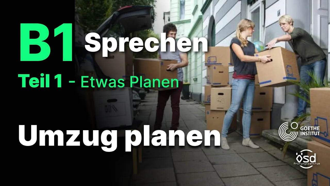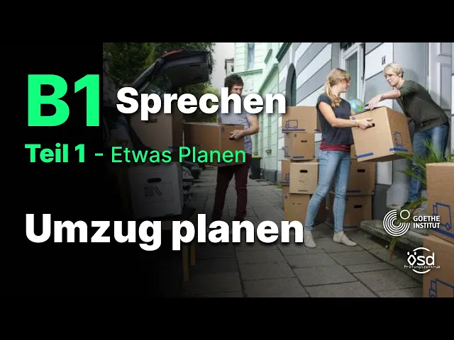 [Musik] etwas planen umzugplen wann umziehen Tag wie lange arbeiten wie transportieren wer kann noch helfen was ist zu machen Umzug zu machen einpacken tragen Stefan hallo Anja schön dich zu sehen Anja hallo Stefan wie geht's dir Stefan gut und dir Anja mir geht's auch gut unser Nachbar Herr Müller hat morgen Umzug und hat mich gefragt ob wir ihm helfen könnten Stefan wann wird er umziehen Anja in einem Monat Stefan natürlich können wir ihm gerne dabei helfen Anja gut wie können wir die Sachen nach deiner Meinung tieren Stefan ich denke wir brauchen dafür einen LKW Anja