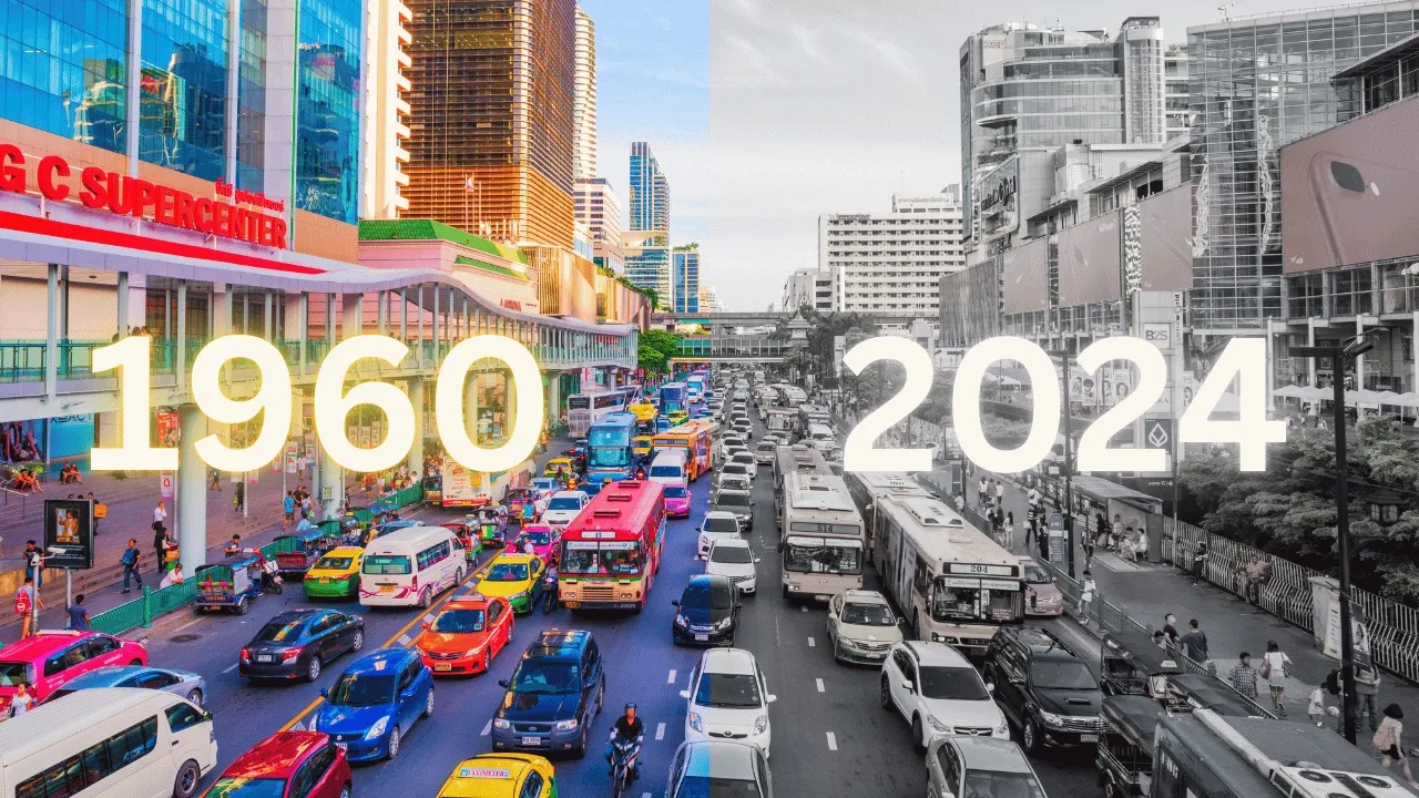Dá uma olhada nessa foto de um engarrafamento do passado. E agora dá uma olhada nessa outra foto de um engarrafamento do presente. Alguma coisa chama a atenção pra você quando você compara essas duas imagens?