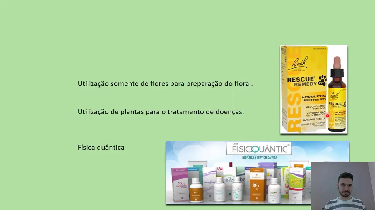 utilização de plantas quase a preparação também é um pouquinho diferente da homeopatia ea terapia quântica então são alguns florais quânticos que ainda não sabe bem como eles são preparados é um surgindo daí de novo no mercado estão tendo resultados muito bons também então quê que diferencia eles quem prescreve como que é prescrito o método de tratamento e também principalmente o jeito de tu fazer tá a farmacotécnica da desses o canto dos olhos apáticos contra os florais quanto os pitacos e também do mecanismo de ação deles tá tudo isso diferencia alopatia esses outros então em importante