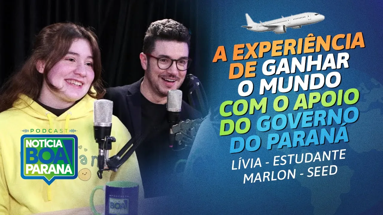 [Música] muito bem galera estamos de volta com o nosso podcast notícia boa Paraná e hoje o papo vai ser sobre educação eu tô aqui com a Ana Tigrinho Tudo bem Ana tudo bem Beto como vai todo mundo Maravilha estamos aqui de volta e Mais especificamente além de educação intercâmbio porque a gente vai falar de um programa incrível o ganhando mundo da Secretaria da Educação do Governo do Estado do Paraná e a gente recebe aqui o Marlon que é diretor do Departamento de intercâmbio da secretaria vai falar sobre o ganhando do mundo com a gente em