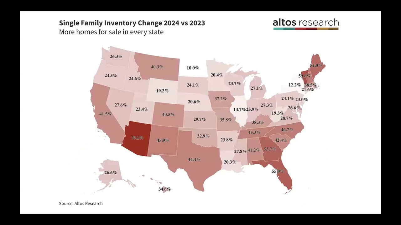 the hardest position to take in analyzing the market is one that is contrarian and bullish when everybody knows the housing market is sluggish and weak but the data shows surprising strength so that's kind of where we are right now home sales are significantly better than they were last year at this time and no one is reporting it yet because the traditional data takes so long to reach the headlines but the fact is as of this week we 14% more homes in contract pending stage now than a year ago uh the these are the homes that will generally close transaction in November and December so we'll probably hear the headlines in like December and January another tricky part of communicating this is that home sales aren't like suddenly great this isn't a strong Market it's just better better than last year and last year it really sucked so last year was super weak as mortgage rates were hitting 8% uh but they're back up to 7% now so maybe this strength is fleeting and will evaporate as we close out the year so we're going to have to keep our watch out for that to happen meanwhile the national home price signals had another positive week this week too and inventory is past Peak for the year so the momentum looks to keep the trends in the positive direction at least for now it is a time for our November monthly webinar next Thursday November 14th at 10: a. m. Pacific so we're going to review all these sales changes we're going to see if we can see uh observe consumers backing off again with surprising October jump in the cost of money we'll look at a bunch of price signals it can sound uh like a bullish housing market for the country with sales prices and up but that's not true in every local market so we'll look at those a lot of those local markets as well well at any rate these conditions change quickly and they keep surprising and that's why at Alto research we track every home for sale in the country every week all the pricing all the supply and demand all the sales all the changes in that data so that you can understand the changes in the US housing market immediately as they happen I'm Mike Simonson I'm the founder of alos research and let's take a look at the data as we're already in November 20124 so let's start with uh Supply today there are 73600 single family homes unsold on the market in the US that's a couple thousand fewer than last week and it's down again from the peak two weeks ago the unsold supply of homes on the market now has passed its peak for 2024 the inventory Peak came a month earlier than it did in 2023 so there are 29.