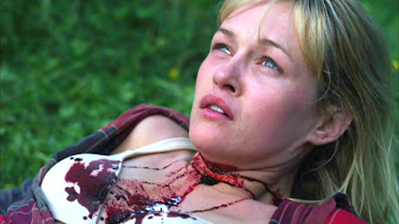 Michelle searches Leslie's body for the keys, but the creature peers into the shed. Michelle finally takes the keys and shuts the alarm off, diverting the alien's attention back to it. Michelle crawls out of the shed and runs to the house nearby.