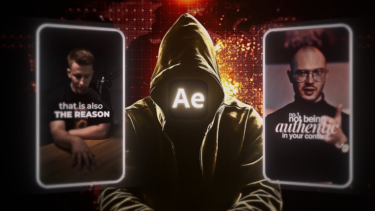 short phone contact is evolving fast and high energy engaging videos are almost everywhere in this video we'll take a play podcast recording and transform it into a dynamic attention grabing video with using op but first let's check out the final result building a personal brand or having your company on the Internet is phenomenal let's say you have a regular business you should have a social presence if you have a business you have a website but you have no SEO why don't you people are going to look for answers on the internet you have to be the first one to show up and that's why I think building any sort of Awareness on the Internet is a zero sum game where you have nothing to lose and everything to gain so first of all we're going to open a new composition then I'm importing the podcast video I will drop the link down below so you can also use it so let's create a new solid and add a gradient rump effect then change the second color to Blue next I'm going to use the rectangle tool and mask the entire solid that's going to be our first animation background so I'm just going to mask it the entire solid layer at a KF frame at the start and slide it to right res our first image and import to the timeline then I'm going to add position and skill K frames around here after that I will go back to the first frame and place it down here and finally select EAS is and make it smoother on graph editor then I added the skill K frame and set a day date now the next thing we need to create a f style and add a glow effect for the entire scene let's just scroll to the effect panels and add a deep glob effect and set the reduce around 40 and exposure 0. 2 then we're going to add alric color and set the Highlight minus 150 and contrast is around 130 and finally I adding huge saturation effect and set the M lightness around 32 so it's not time to our text and I'm going to create a new text layer and write the main title I will use morite extra bolt which you can also find blow after resizing and changing the color let's place it behind the man then I added that position ke frame and place it up here and select both K frame and make it easy so let's go back to fake panels and add deep CL effect set the radius to 120 and exposure 0. 1 now I'm going to create a new text layer type the word and change the font as rox1 then change the color to Black Center The Anchor Point and place it around here as from the background I went over the rectangle shape layer and changed the color as dark balloon then I create a simple rectangle and placed behind the text I finished off with nice deep glow with an exposure 0.