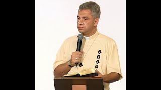 nós é como a presença desse meu irmão aqui agora cuidando das imagens daquele outro que está cuidando do som daquele que tá cuidando do tempo daquele que tá lá embaixo cuidando é uma presença atuante e isso é um segundo passo que nós precisamos dar a primeira grande experiência que nós precisamos fazer sem a qual nossa vida perde por completo seu pedde por completo O seu sentido ele está no meio de nós mas preciso dar um passo e tomar consciência do modo dessa presença e que coisa fantástica na tradução da Ave Maria que é a mesma