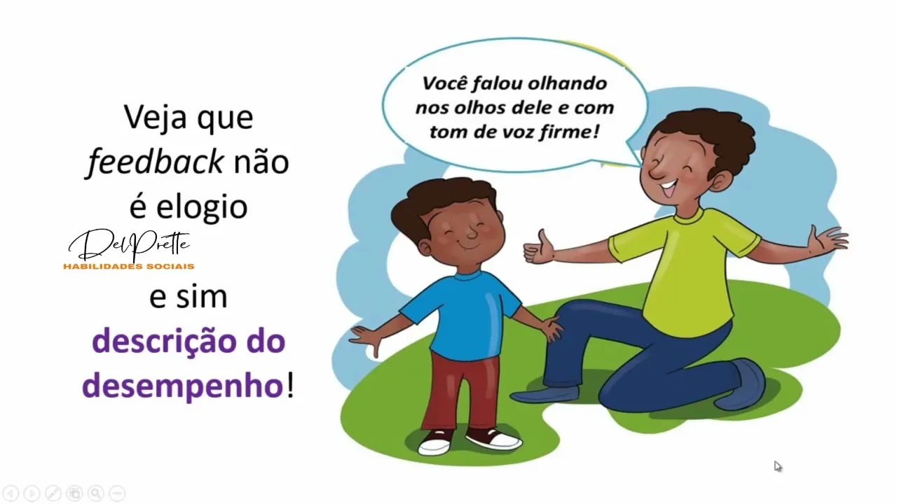 reserve reserve só quando for indispensável Em algum momento pode ser que você precise para corrigir algum desequilíbrio nas interações mas evite eh é interessante quando você usa o feedback num processo de avaliação conjunta ou seja ó vamos agora dar feedback nessa situa você pede também feedback você ouve o que o outro tem a dizer e quando você dá seu feedback evite conotação emocional negativa não é desabafo não é crítica é uma descrição Então não precisa ter conotação emocional negativa mesmo quando alguém Faz alguma coisa que você não gostou e por exemplo seu filho coloca o