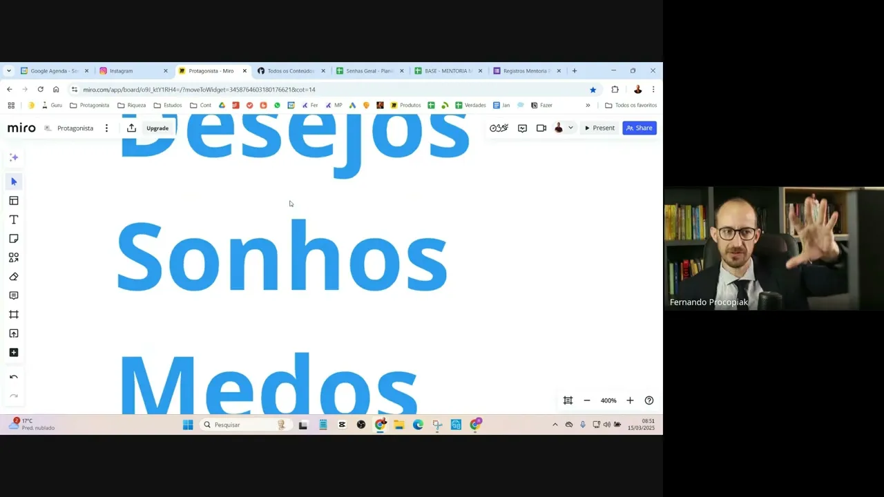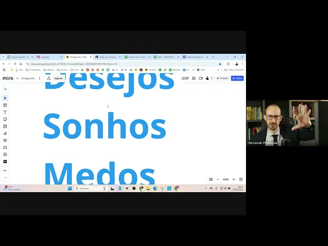 0 você clica aqui e vai escrevendo cara eu acho que a minha Persona é isso eu acho que é isso começa escrevendo na areia você não tá escrevendo na pedra na areia você pode ir mexendo vai melhorando você vai falando comigo semana a semana a gente vai est junto você vai melhorando essas coisas mas começa a escrever hábitos de personas então aqui ó por exemplo eu Ten o Jorge ah Fernando mas tem gente casada tem gente solteira na tua na tua na tua mentoria tem cara mas eu tô dizendo a Persona ela meio representa a maioria dos teus clientes que por enquanto se você não tiver nenhum vai ser meio que parecido com você mas eu botei aqui O Jorge o Jorge ele procrastina ele não confia nele ele pensa muito e faz pouco ele colisiona frustrações ele sabe que pode mais mas não sabe como superar isso Essas são as dores da da Persona da mentoria protagonista que o cara que tá mais travado na vida cara quer fazer acontecer desejo dele quer deixar de ser um mais ou menos na verdade ele quer deixar de ser um bosta que é uma palavra que as pessoas falam muito o cara quer deixar de ser um merda quer deixar de ser um bosta quer voltar a Acreditar nele quer tirar os projetos do Papel Então esse cara fica ansioso ali no Instagram ele fica olhando as pessoas realizar e não realiza ele s um merda e daí fica nesse ciclo e t tal ele quer dominar o tempo dele por quê Porque ele vê que uma semana passou e daí ele se frustra e ele quer ganhar mais dinheiro tudo isso na mesma Persona na mesma pessoa não por isso que a Persona ela tipo ela resume as coisas entendeu E aí você trabalha para ela você vai trabalhar como mentor para essa para essa Persona tanto se você for fazer sei lá um marketing pra frente quando você sabe tipo tudo Gir em torno em resolver essa pessoa resolver o problema dessa pessoa eh a outra outra mentoria que eu tenho que é profissionais valorizados lá para ajudar o cara a fazer mais grana é a Jéssica minha Persona quarentinha a renda dela é mais ou menos 7,5 as dores dela trabalha muito não ganha mal tipo porque 7. 000 ah 7 repito você vai se basear na realidade 7,5 hoje é um salário acima da média o dobro da Média média do brasileiro é 3 pau média do Brasil ganha R 3. 000 sete já é o dobro então não ganha mal mas tá cansada que ela trabalha para caramba e e e ela não sabe quando que aquilo vai acabar ela não sente que vai aguentar esse ritmo por muito tempo então assim ó Provavelmente o o cliente de vocês ele vai est meio que aqui Essas são as dores do teu cliente a psicóloga a nutricionista o baixista eh o o chefe de cozinha não sente que é valorizada no trabalho mesmo se ela for autônoma ou trabalhar para algum lugar não tem confiança necessária para cobrar mais não sabe vender profissionalmente não sabe onde achar clientes melhores não consegue aproveitar as as outras áreas da vida quer dizer o trabalho meio que tomo conta eu sei que tá vendo quando eu sei os problemas da pessoa que eu quero resolver eu vou criar soluções para ajudar ela e lembra você já passou por isso você já passou pelas dores da tua Persona porque você é a tua Persona transformada não Dev falar muito sobre isso e aí ela quer o quê mais clientes nesse caso desse produto aqui tá Tô dando um exemplo meu quer melhores clientes quer ser mais reconhecida quer cobrar mais que tem mais confiança para vender quer viajar mais então isso aqui por exemplo eu vou usar no meu discurso de venda quantas viagens você tá fazendo eh por semana por ano cara falá cara não tô fazendo viagem nenhuma tá entendendo Ok então sobre viagem sobre Persona sobre público alvo deixa eu ver o que mais sobre esse assunto aqui Ah tá E daí você vai deixar muito o teu mínimo e máximo tá o mínimo e máximo por exemplo que eu coloquei naquelas mentorias ali é assim cara o cara que eu percebo né o cara tem que tá querendo fazer ele tem que tá disposto a querer fazer e aqui l de mentor por exemplo o cara tem que estar pelo menos ganhando 15.