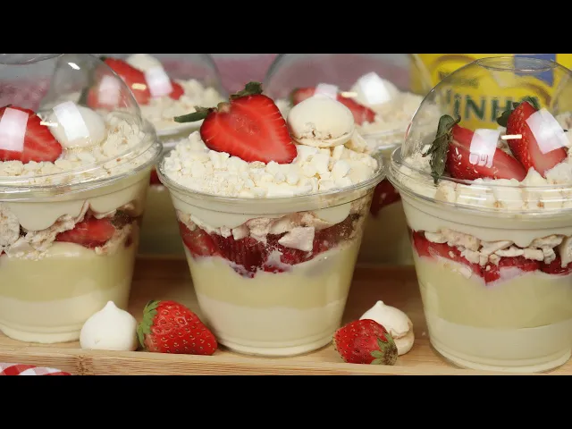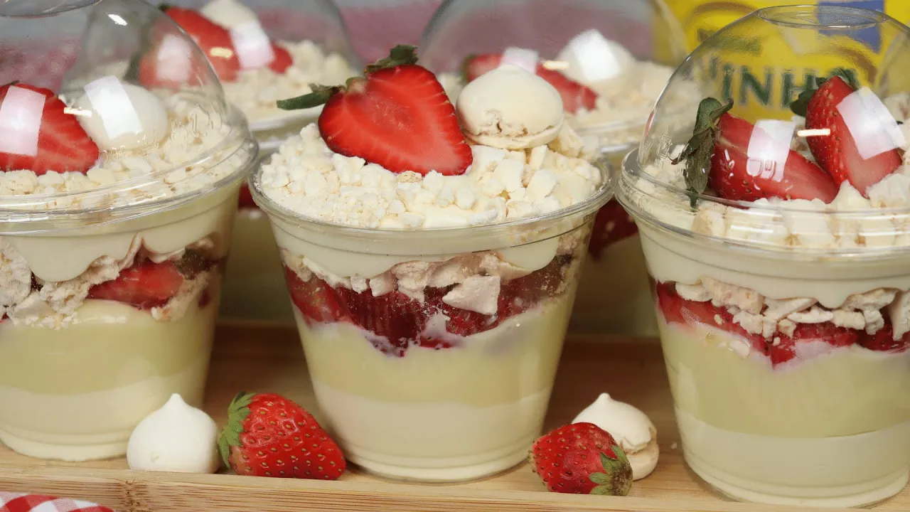 desta sobremesa É de um dia ou no máximo dois dependendo aí da qualidade do frescor dos seus morangos esse tipo de receita né sobremesas que são somente recheios não tem uma massa intercalando ela acaba durando um pouco menos porque é diferente de um bolo no pote onde tem a massa para absorver aquele excesso de água que o morango acaba soltando inevitavelmente não tem como parar modificar isso esse é uma ação natural da fruta fresca então ele acaba soltando aquela água e não tem para onde ir que ela fica ali empossada no copo então não adianta