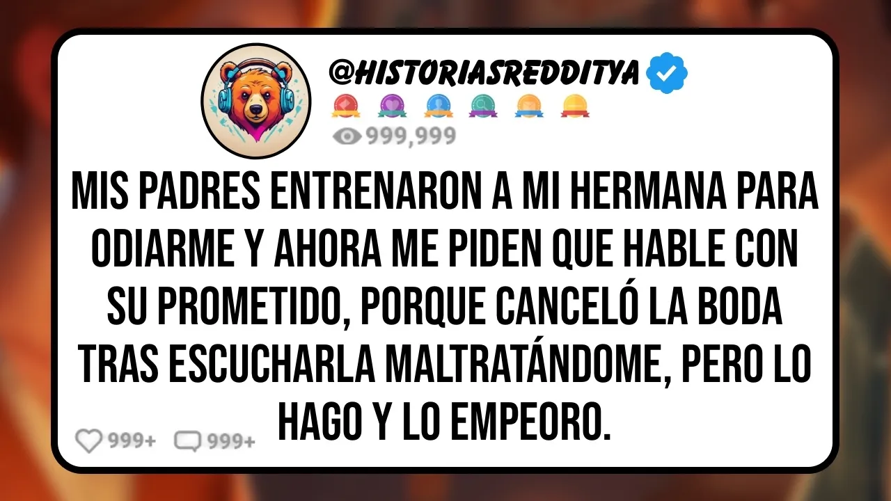 mis padres entrenaron a mi hermana para odiarme y ahora me piden que hable con su prometido porque quiere cancelar la boda tras escucharla maltratándome pero lo hago y lo empeoro Hola Estoy un poco perdida porque no soy usuaria de reddit veo publicaciones sobre reddit en tiktok Y sé que la gente viene a este subreddit para pedir consejos Necesito desesperadamente una perspectiva externa en este momento así que por favor Ayúdenme si es posible Disculpen si algo está mal en la publicación estoy escribiendo desde el móvil además estoy un poco confundida mentalmente Así que puede que esto