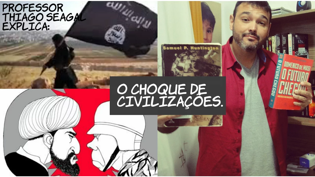 e de esquerda mas não é sobre isso que eu vou falar hoje para vocês no ano de 1993 o cientista político americano publica um artigo numa revista uma revista de pouca expressão n eu esqueci o nome da revista não vem é o caso também o artigo chama-se o choque de civilizações o autor desse artigo depois se tornou muito famoso inclusive tornou-se professor da Universidade de Harvard chama-se Samuel hunton e Nesse artigo ele vai defender a tese de que o final do Século XX e o início do século XX vão ser caracterizados pelo crescimento de conflitos