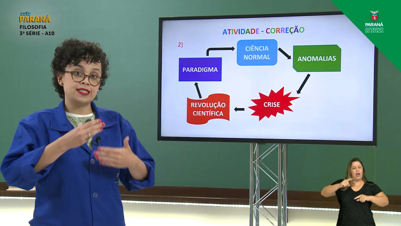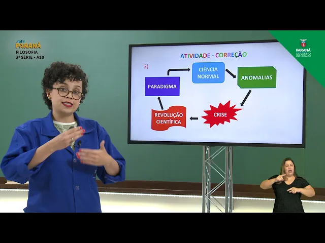 E aí E aí E aí E aí [Música] E aí [Música] E aí [Música] Oi e aí pessoal conseguiram responder pensaram a inscreveram no caderno Então o que representa o conceito de paradigma para a destruição desse mito de que a ciência é um conhecimento infalível é absolutamente seguro né certo sobre o mundo pensaram sobre isso eu não Saquei para uma sugestão de resposta a partir do conceito de paradigma entendemos que a ciência estabelece conjeturas sobre os fenômenos Isso significa que não é um conhecimento infalível mas sim um conhecimento provisório as teorias Elas têm um tempo
